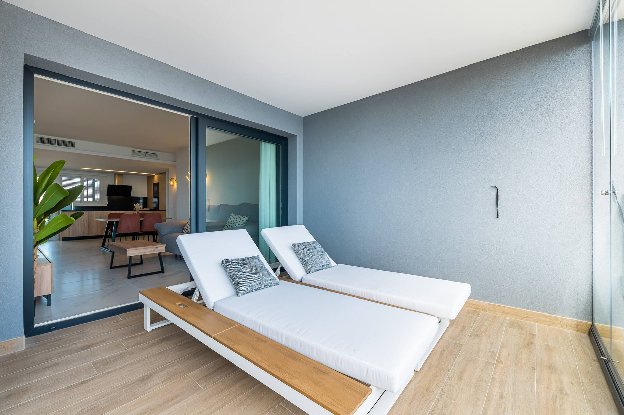 Una de las joyas de este alojamiento es su espectacular solárium privado, un espacio exclusivo con vistas al mar que invita a desconectar y recargar energías. Equipado con toma de agua tipo ducha exterior, es el lugar perfecto para refrescarte tras una jornada de sol. Disfruta del clima mediterráneo en un entorno tranquilo y privado, ideal para tomar el sol, leer, relajarte o compartir momentos inolvidables al aire libre.