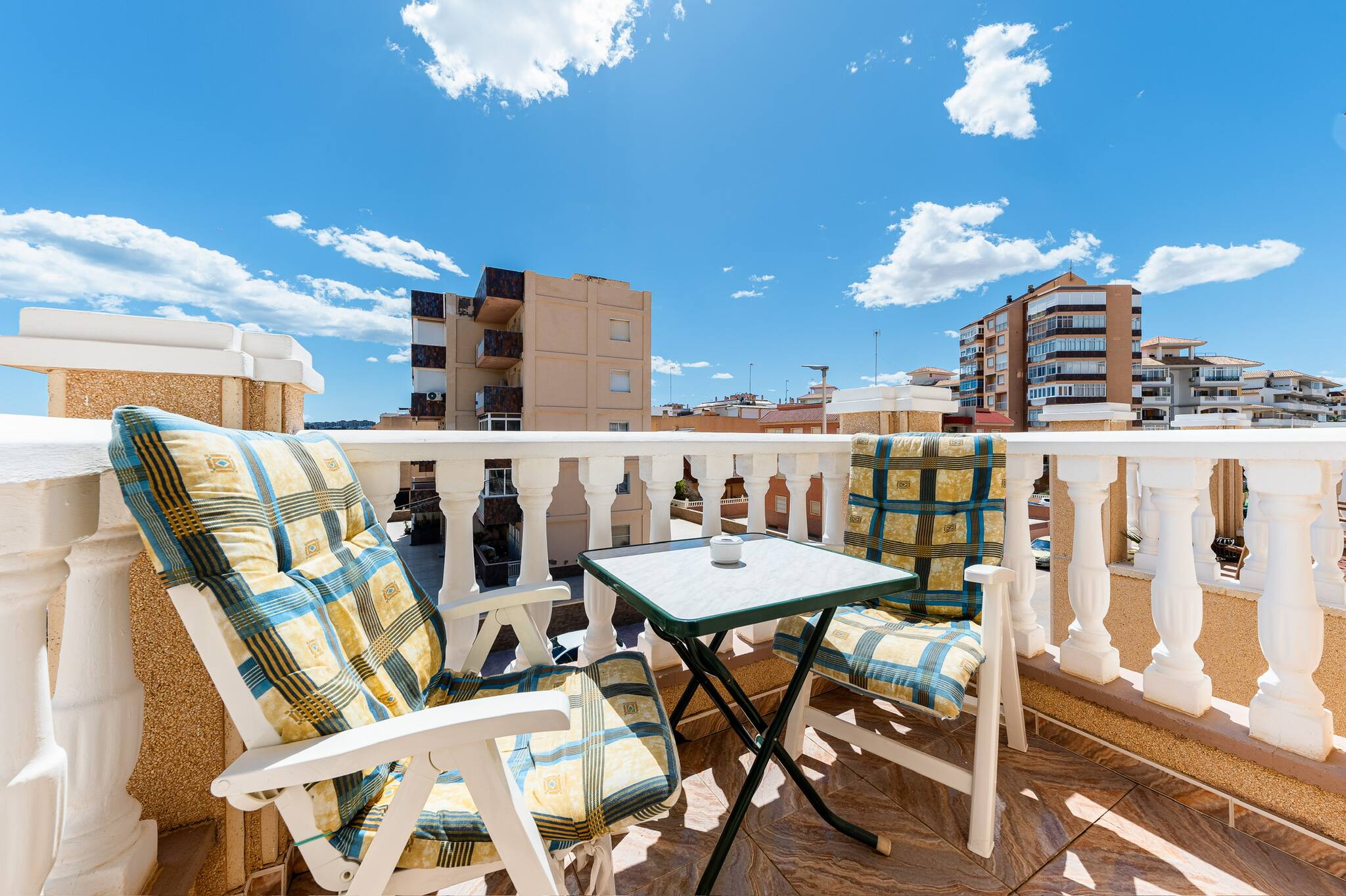 Dispone de terraza soleada para disfrutar del clima mediterráneo, piscina comunitaria y acceso cercano a todos los servicios: supermercados, restaurantes, farmacias y transporte público.
