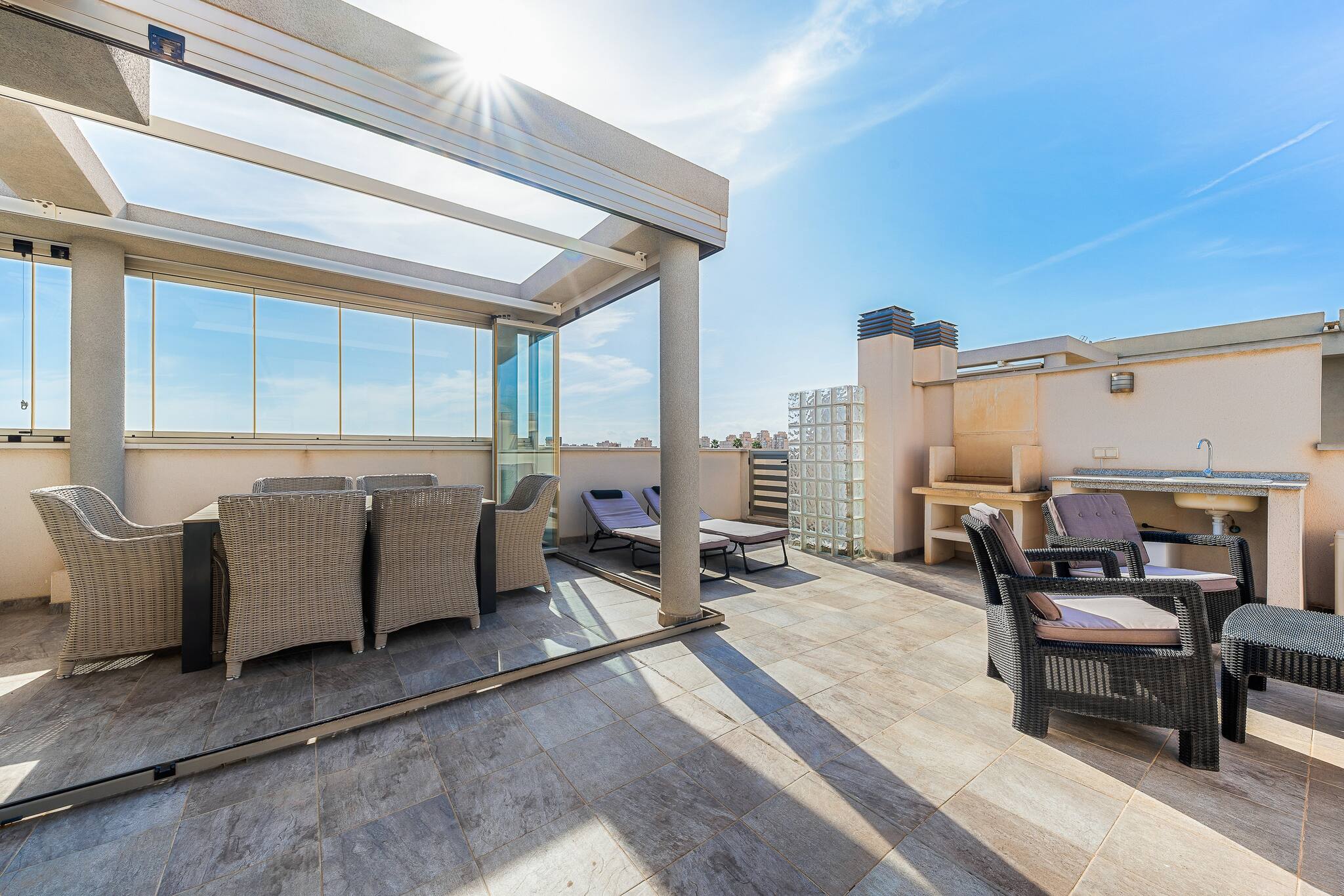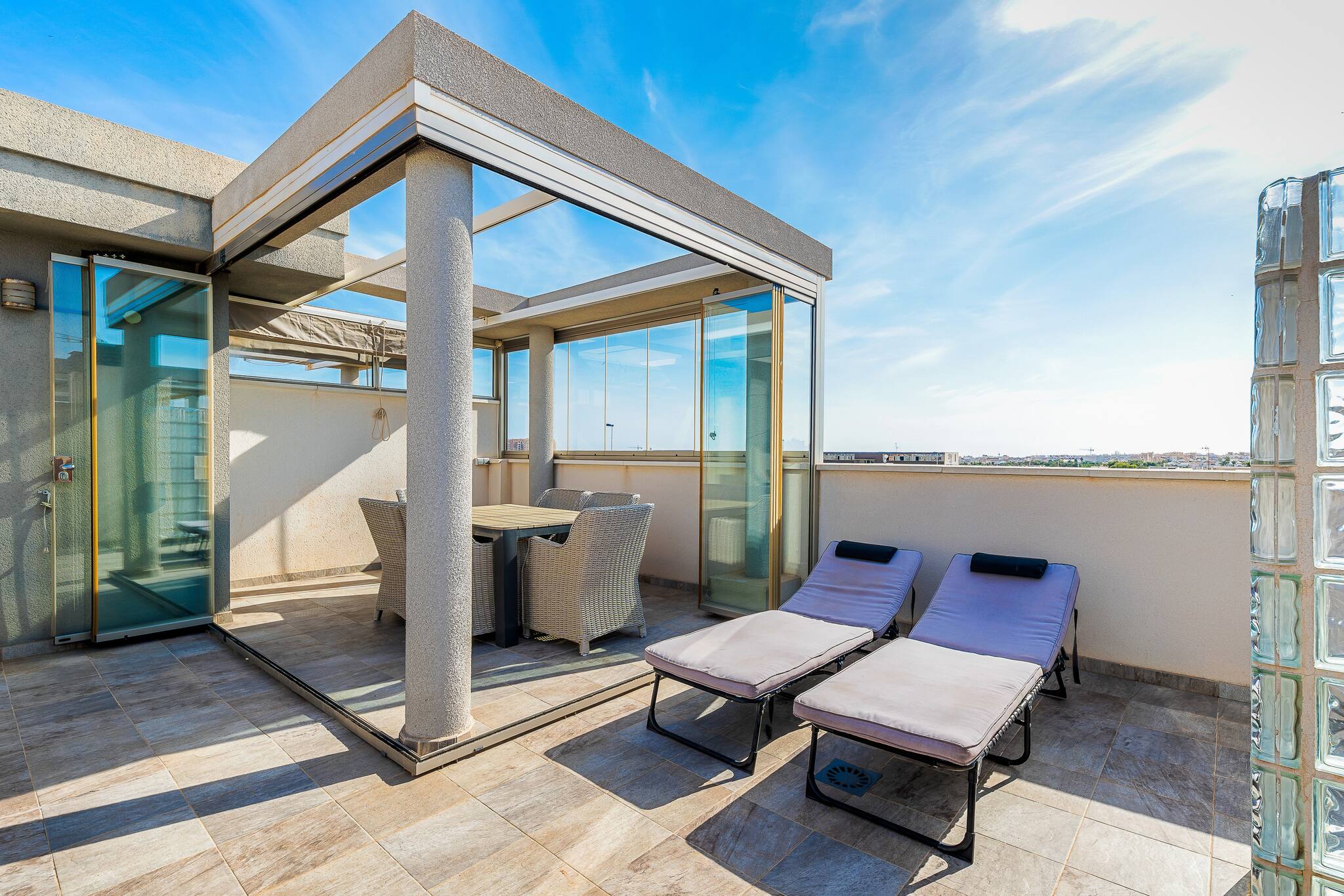 Situado en una tranquila zona residencial de Torrevieja, este moderno apartamento ofrece una experiencia luminosa y confortable a pocos minutos de las playas y centros comerciales. Cuenta con amplio salón open-concept, cocina totalmente equipada, decoración contemporánea y una espectacular terraza privada perfecta para relajarse o disfrutar al aire libre. La zona es ideal para familias y parejas, con parques, restaurantes y servicios cercanos.
