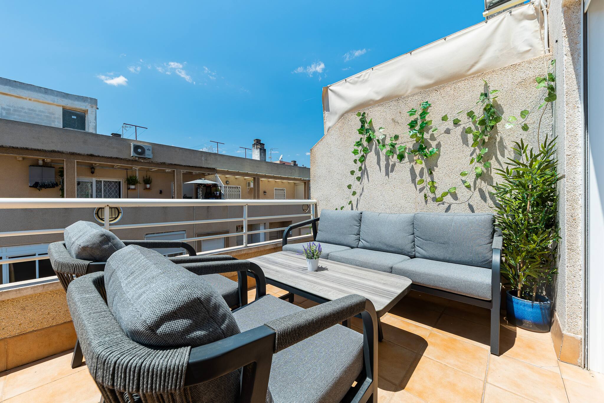 Luminoso y soleado ático en el corazón de Torrevieja. Con 3 habitaciones, amplia terraza con vistas, y piscina comunitaria. A pocos metros de las mejores zonas de ocio y la playa, es uno de los pocos áticos disponibles para alquiler vacacional en la zona. Con todas las comodidades, aire acondicionado, cocina equipada y WiFi. A corta distancia tienes supermercado y estación de buses. Diseñado para el descanso y la diversión en familia o con grupo de amigos. ¡No dejes pasar esta oportunidad!