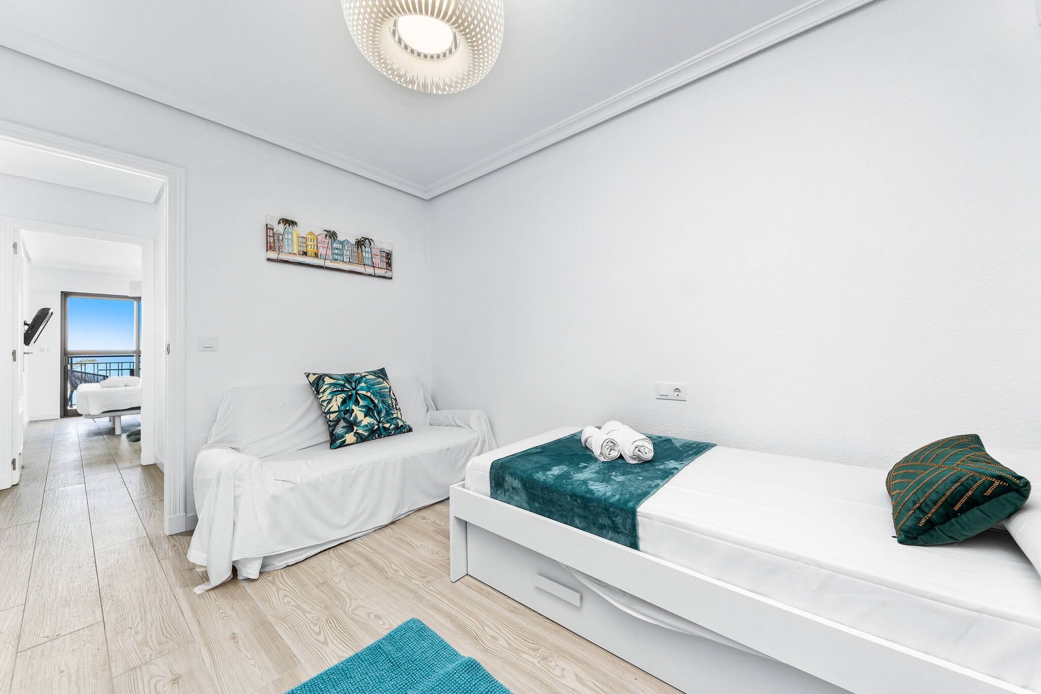 Dormir con el sonido de las olas será tu rutina nocturna. Además, el alojamiento cuenta con aire acondicionado, wifi y una plaza de aparcamiento subterráneo en el mismo edificio, algo esencial en temporada alta. También dispone de una ducha exterior en la entrada del edificio para enjuagarse al volver de la playa .
