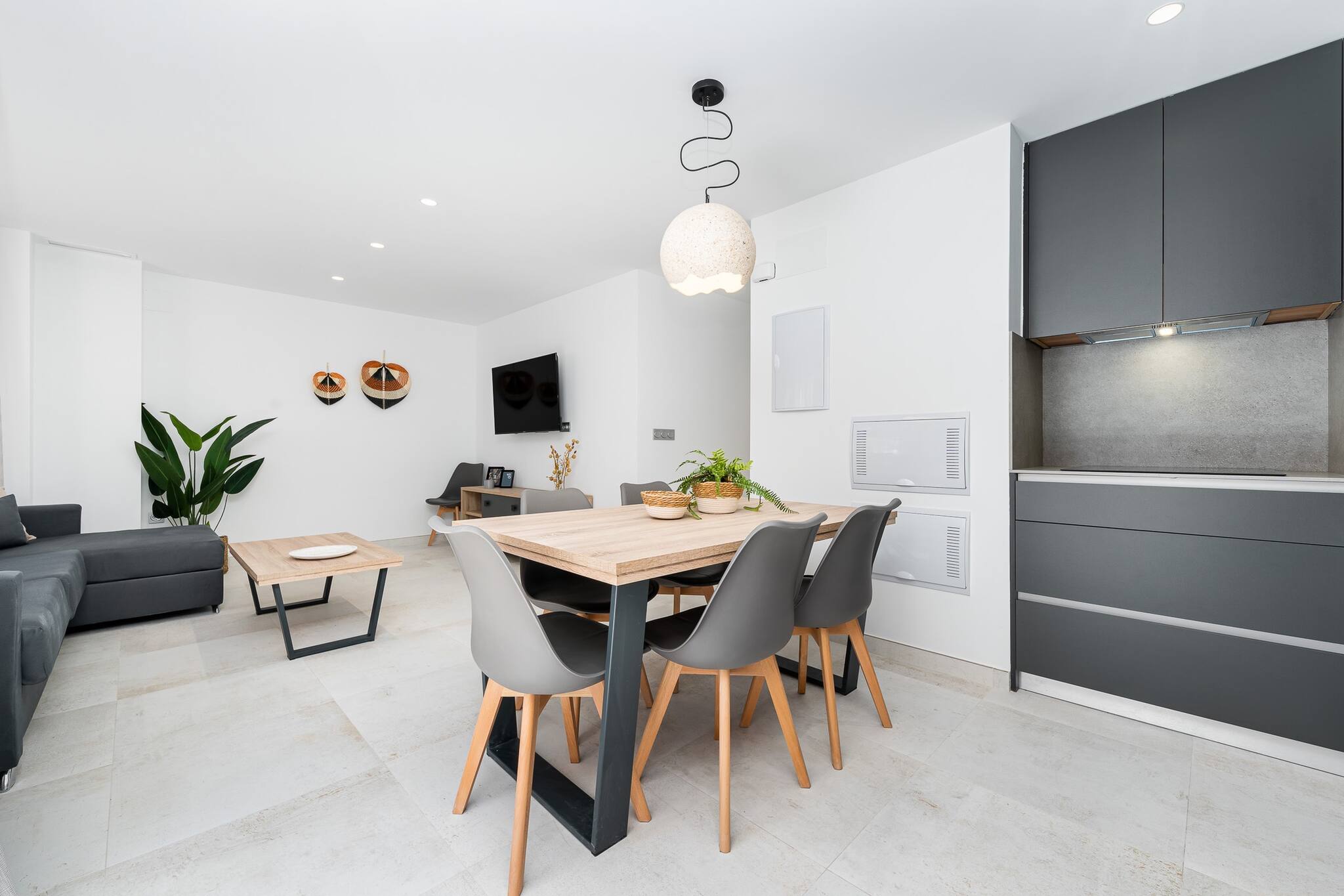Al entrar a nuestro alojamiento, encontrarás una sala de estar acogedora y cómoda con Smart TV, ideal para disfrutar de una película en familia o relajarte después de un largo día de playa.