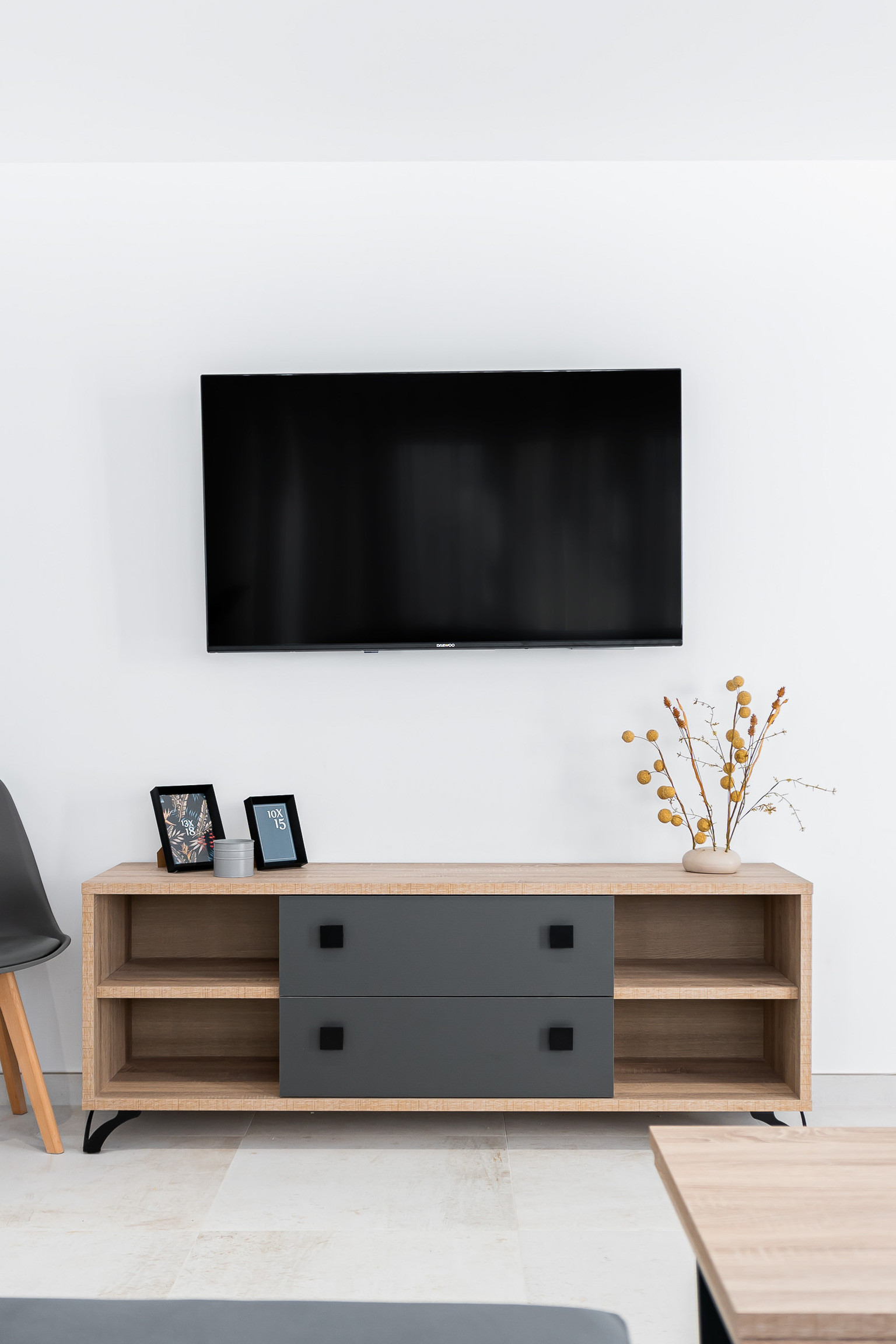 Al entrar a nuestro alojamiento, encontrarás una sala de estar acogedora y cómoda con Smart TV, ideal para disfrutar de una película en familia o relajarte después de un largo día de playa.