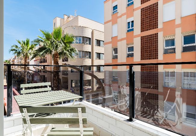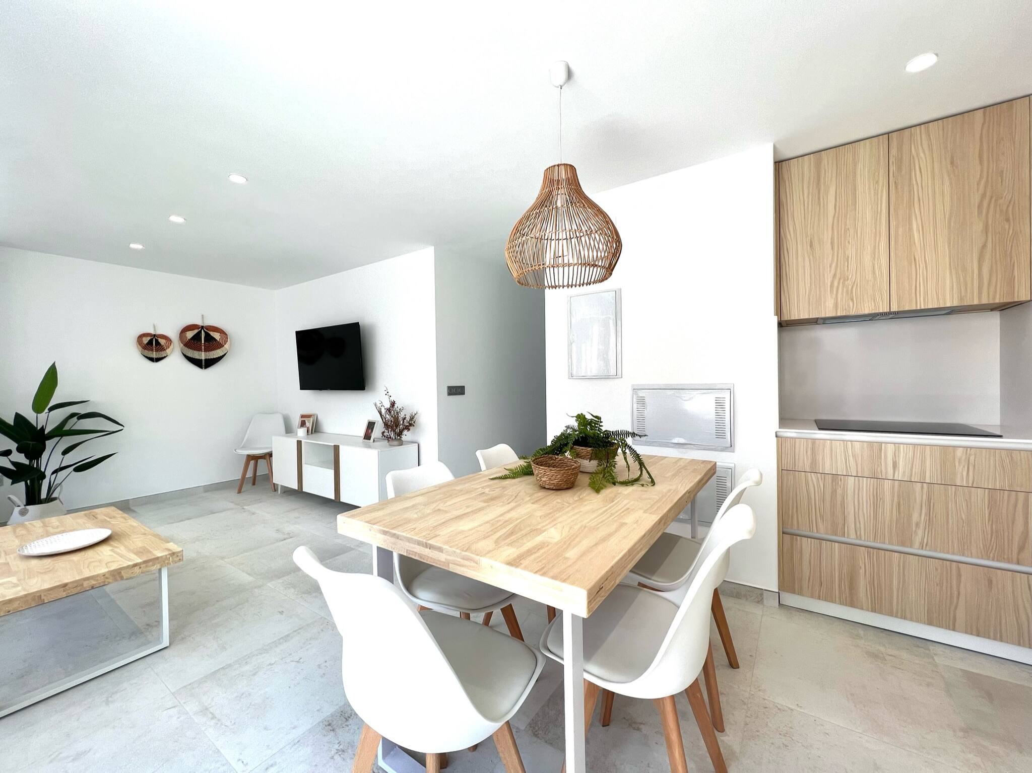 Al entrar a nuestro alojamiento, encontrarás una sala de estar acogedora y cómoda con Smart TV, ideal para disfrutar de una película en familia o relajarte después de un largo día de playa.