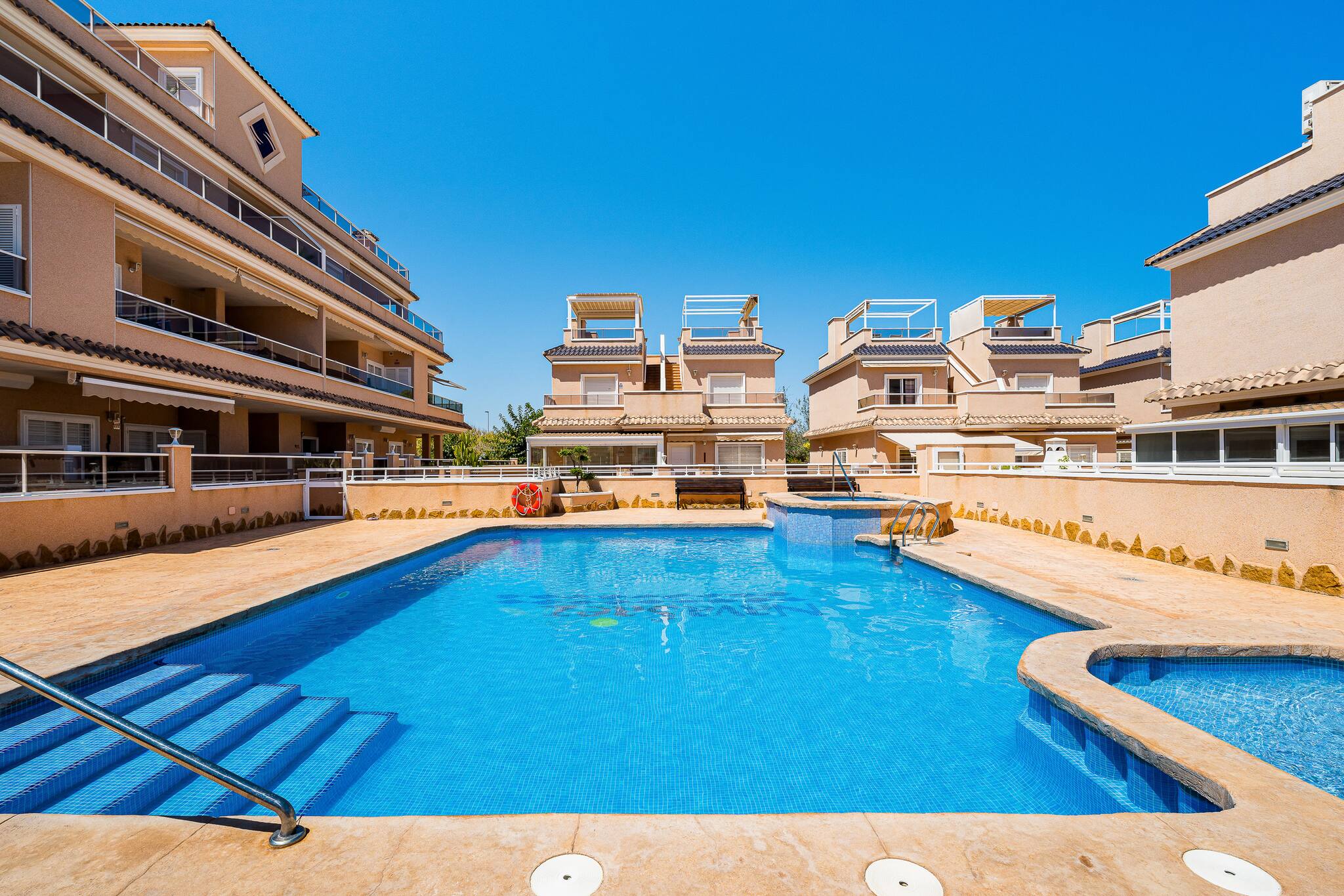 Es un lugar perfecto tanto para una escapada romántica en pareja como para una familia de hasta 4 personas. Justo al lado se encuentra un pequeño parque muy agradable en verano, con un área de juegos infantil. La naturaleza de los alrededores es excepcional: el Parque Natural de San Pedro del Pinatar, con sus salinas y flamencos; el reconocido centro de spa “Thalasia”, que ofrece diferentes programas de curas termales y espacios de relajación; el club de golf Romero, así como el pueblo español de Pilar de la Horadada, se encuentran a pocos minutos en coche para quienes deseen sumergirse en la vida local española (festividades, desfiles de carnaval, procesiones, flamenco, fiestas patronales, polideportivo, comercios, restaurantes, bancos, etc.).