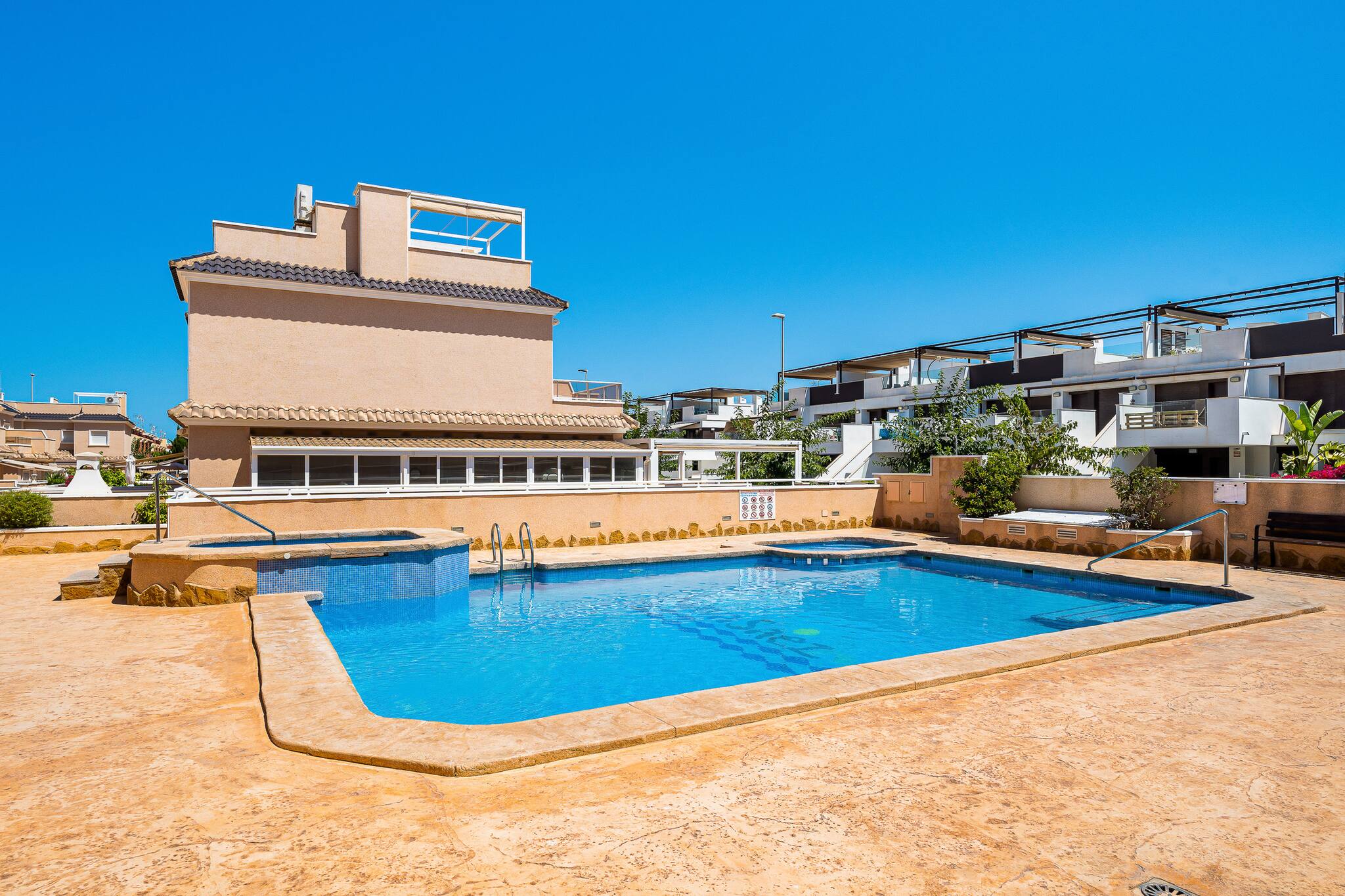 Desconecta en este refugio único en Dehesa de Campoamor, a solo 10 minutos andando de la playa de Mil Palmeras. Cuenta con 2 dormitorios (1 cama dole y 2 individuales). Disfruta de una piscina privada y una terraza con tumbonas para relajarte. Su interior moderno y acogedor cuenta con un amplio salón con sofá cama, aire acondicionado y dos habitaciones cómodas. Ideal para familias o amigos, este alojamiento combina relax y confort en una ubicación privilegiada cerca de atractivos turísticos.