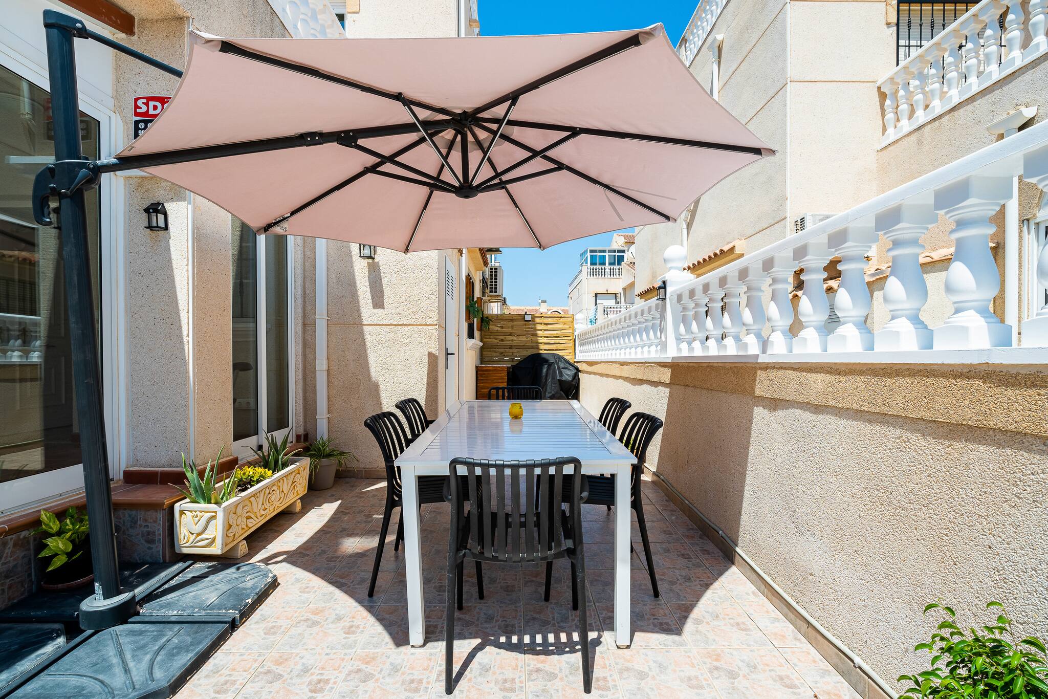 Relájate en esta encantadora casa con patio privado, barbacoa, comedor exterior y tumbonas, situada en El Coral Fase 1, Torrevieja. A solo 800 m de la playa, con piscina comunitaria, ideal para familias o parejas. Cocina equipada, aire acondicionado, ventiladores de techo y zona residencial tranquila. Bien comunicada: autobuses, supermercados y acceso rápido a la N-332 para explorar la Costa Blanca. ¡Comodidad, sol y mar todo el año!