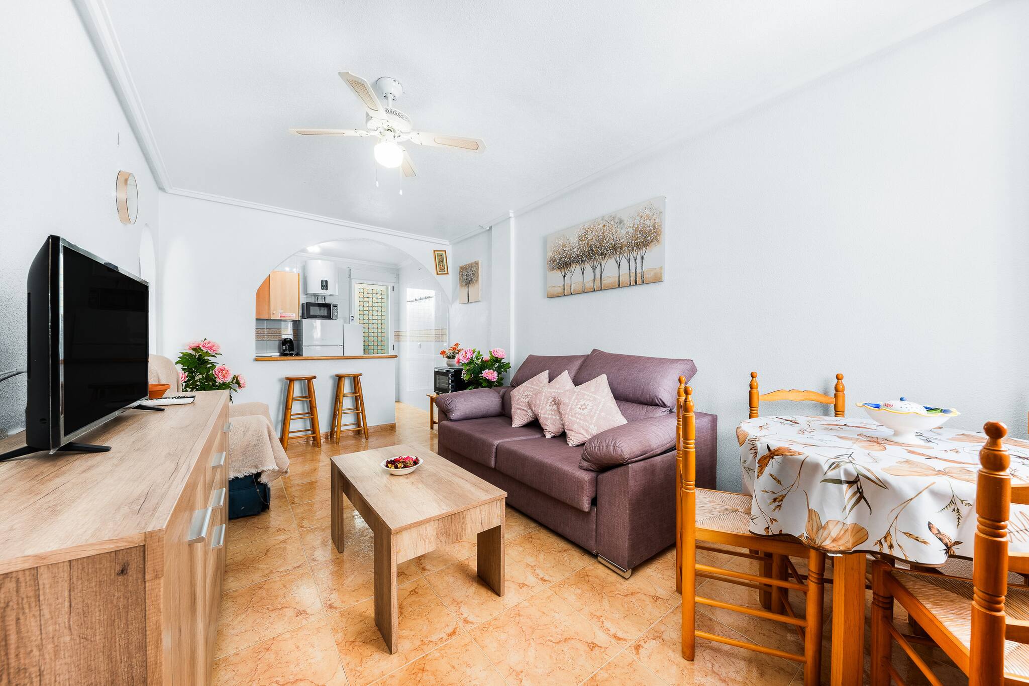 Apartamento acogedor en Torrevieja, perfecto para vacaciones en familia o pareja. Dispone de salón con sofá cómodo, cocina equipada y terraza exterior para disfrutar del sol. Ubicado en un residencial con gran piscina, zonas verdes, pistas de tenis y fútbol. A pocos minutos del centro, playas, supermercados y restaurantes. Con todo lo necesario para una estancia cómoda y relajante en la Costa Blanca.