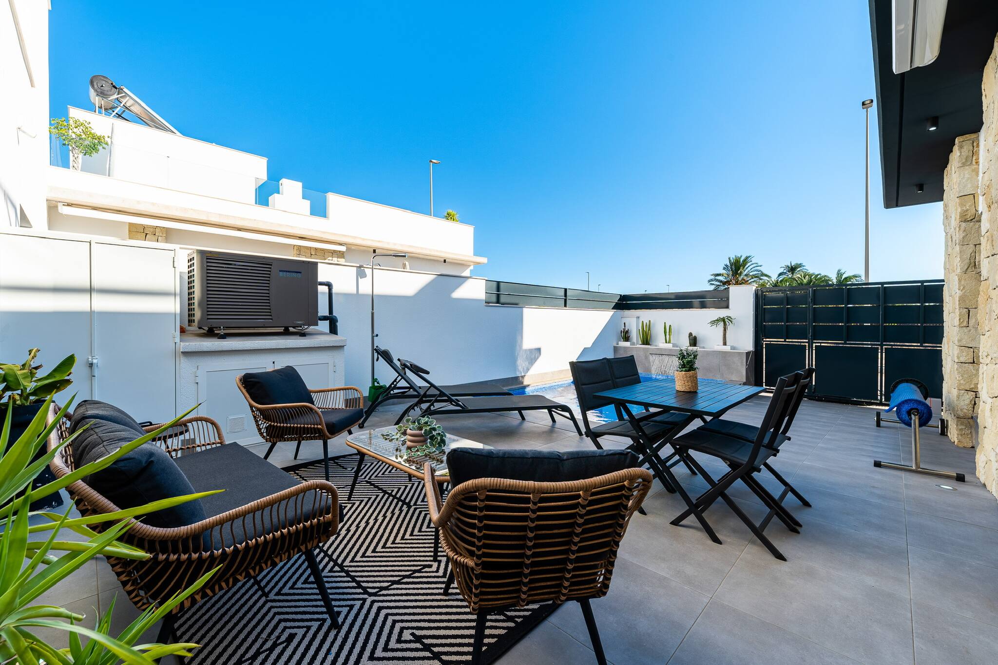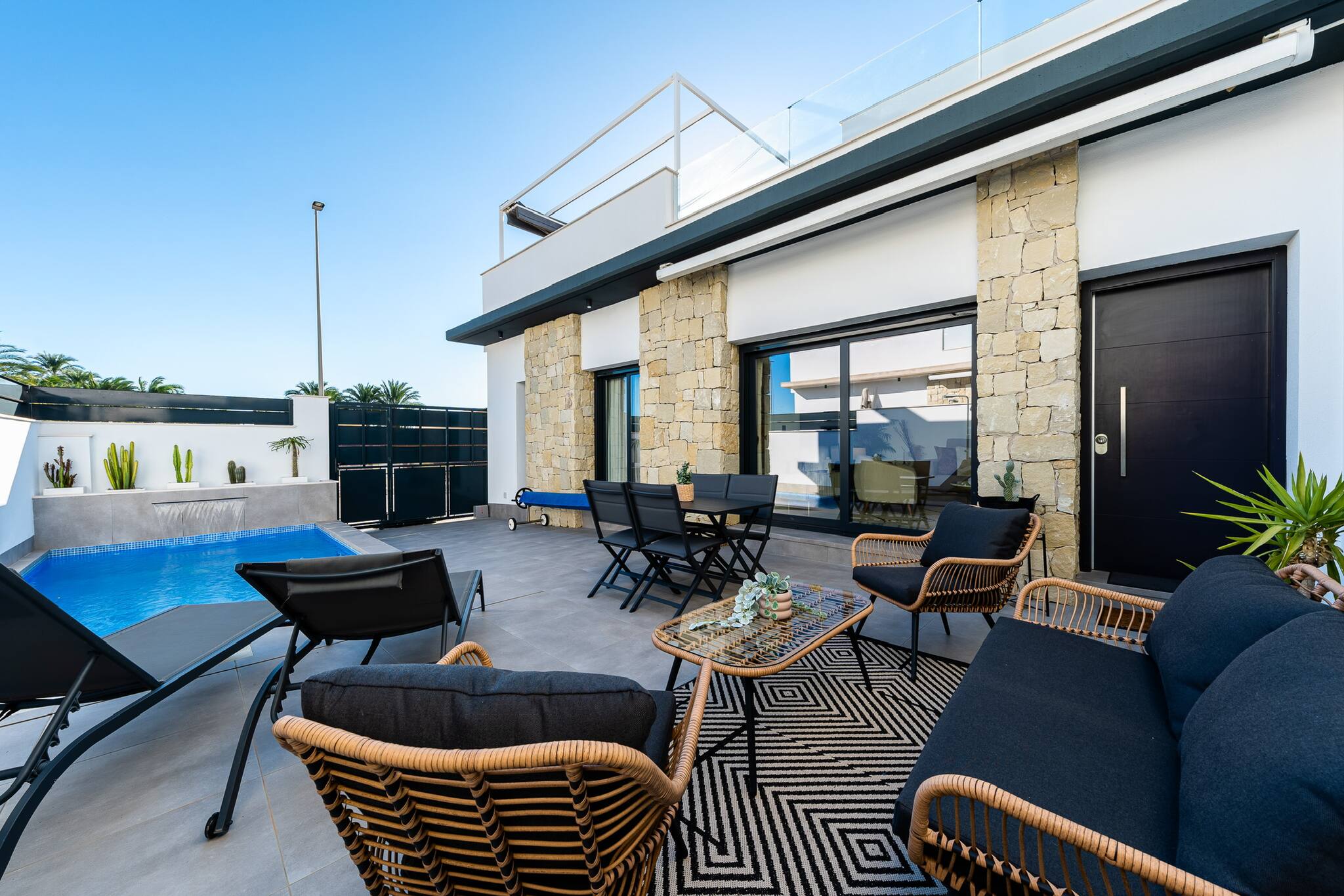 Das Ferienhaus in Daya Vieja verfügt über 3 Schlafzimmer und hat eine Kapazität für 6 Person(en). Die gemütlich und sonnige Unterkunft verfügt über 100 m². Die Unterkunft befindet sich 1 km vom Supermarkt "Supermercados locales" entfernt, 2 km von der Stadt "Daya Nueva", 4 km von der Stadt "Dolores", 5 km vom Supermarkt "Mercadona", 6 km von der Stadt "Rojales", 6 km vom Golfplatz "La Marquesa Golf", 10 km vom Golfplatz "Vistabella Golf", 10 km vom zum Sandstrand "Playa de Guardamar del Segura", 11 km vom zum Sandstrand "Playa del Moncayo", 12 km vom Kiesstrand "Cabo Cervera6", 12 km vom zum Sandstrand "Playa de La Mata", 15 km vom Golfplatz "Villamartín Golf", in einem Wohngebiet und auf dem Land. Die Unterkunft verfügt über eine Waschmaschine, einen Grillplatz, ein Bügeleisen/-brett, ein Internetanschluss (WLAN), ein Föhn, eine Wärmepumpe, eine Klimaanlage, ein Privatpool, einen Parkplatz im Freien, 1 Fernseher. Die Offene Küche mit Induktions-Kochfeld ist ausgestattet in einen Kühlschrank, eine Mikrowelle, ein Backofen, Gefrierschrank, eine Spülmaschine, Geschirr/Besteck, eine Kaffeemaschine, einen Toaster und einen Wasserkocher.