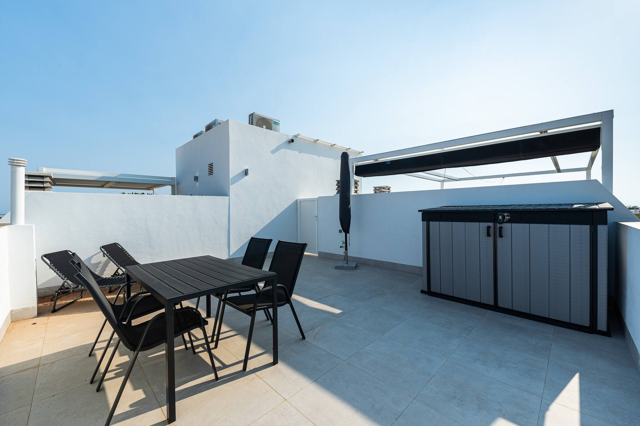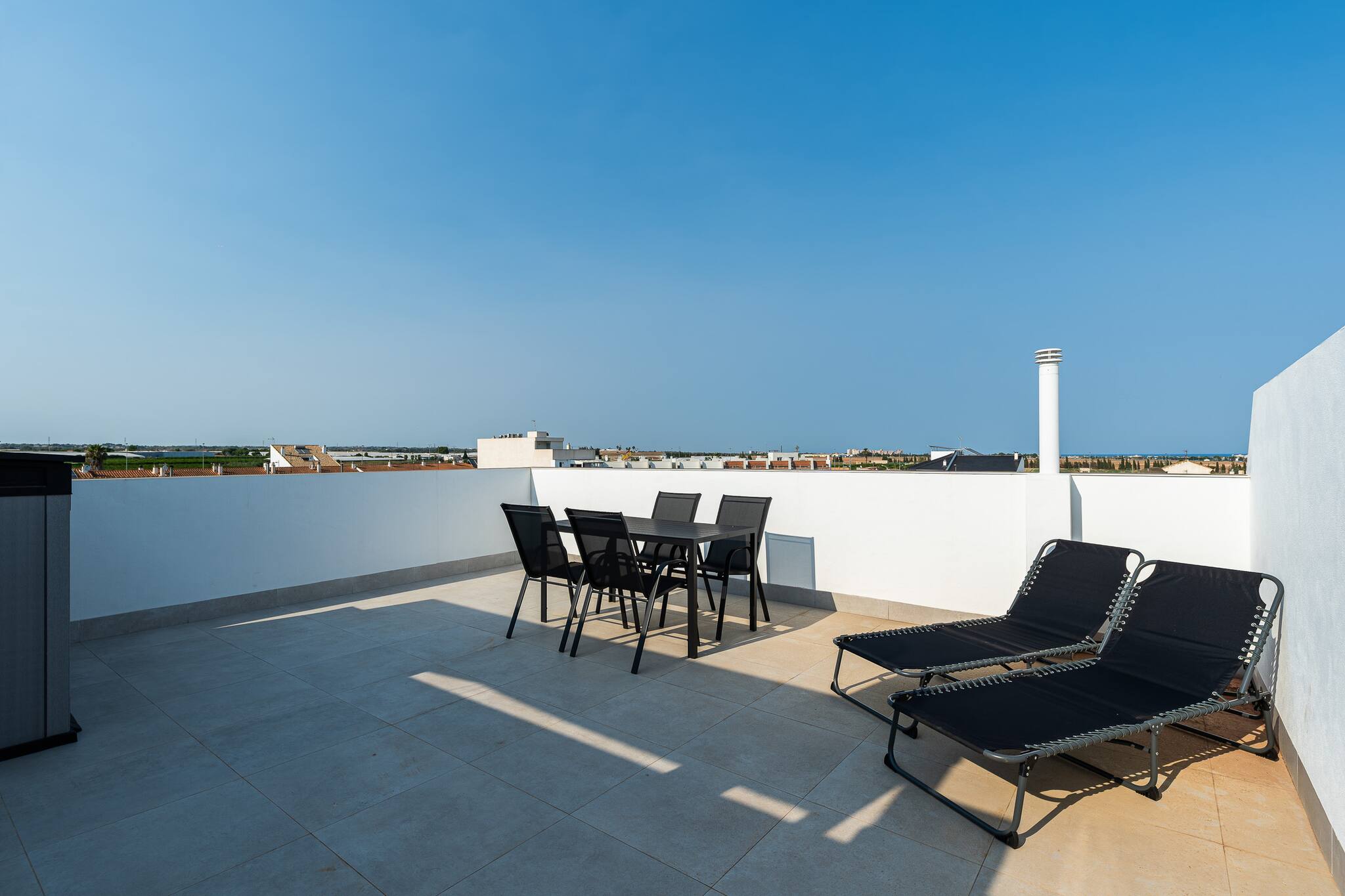 Das Ferienhaus in Pilar de la Horadada verfügt über 2 Schlafzimmer und hat eine Kapazität für 4 Person(en). Die gemütlich und sonnige Unterkunft verfügt über 90 m². Die Unterkunft befindet sich 200 m von der Stadt "Centro" entfernt, 300 m vom Supermarkt "Consum", 800 m vom Supermarkt "Mercadona", 1 km vom Supermarkt "Lidl", 3 km vom zum Sandstrand "Playa del Mojón", 4 km vom zum Sandstrand "Playa de las Higuericas", 4 km vom zum Sandstrand "Playa de Mil Palmeras", 5 km vom Golfplatz "Lo Romero Golf", 10 km vom Golfplatz "Villamartín Golf", in einem Wohngebiet und im Zentrum. Die Unterkunft verfügt über eine Waschmaschine, ein Internetanschluss (WLAN), eine Wärmepumpe, eine Klimaanlage, 1 Fernseher. Die Offene Küche mit Induktions-Kochfeld ist ausgestattet in einen Kühlschrank, eine Mikrowelle, ein Backofen, Gefrierschrank, eine Spülmaschine, Geschirr/Besteck, Kochutensilien, eine Kaffeemaschine und einen Wasserkocher.