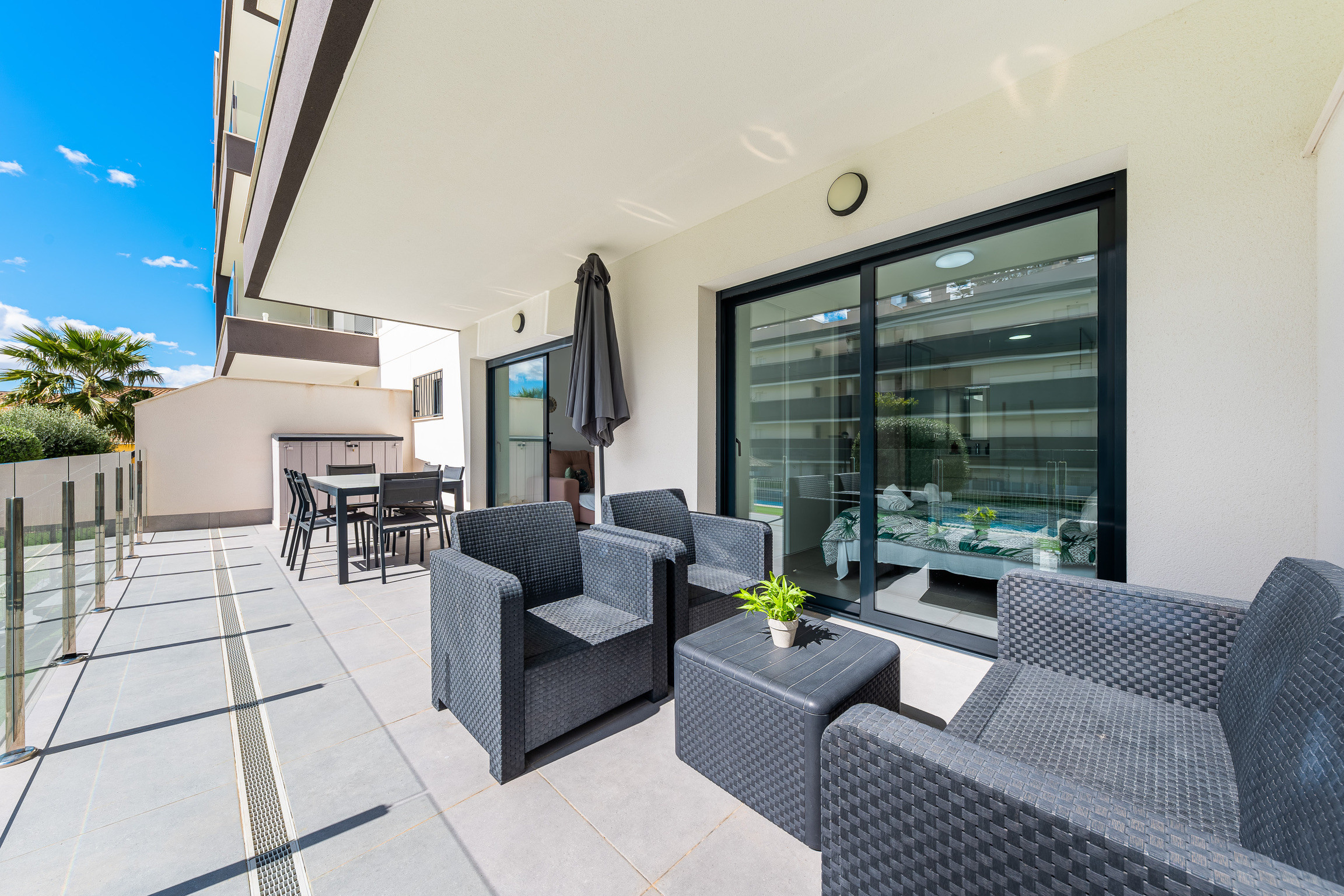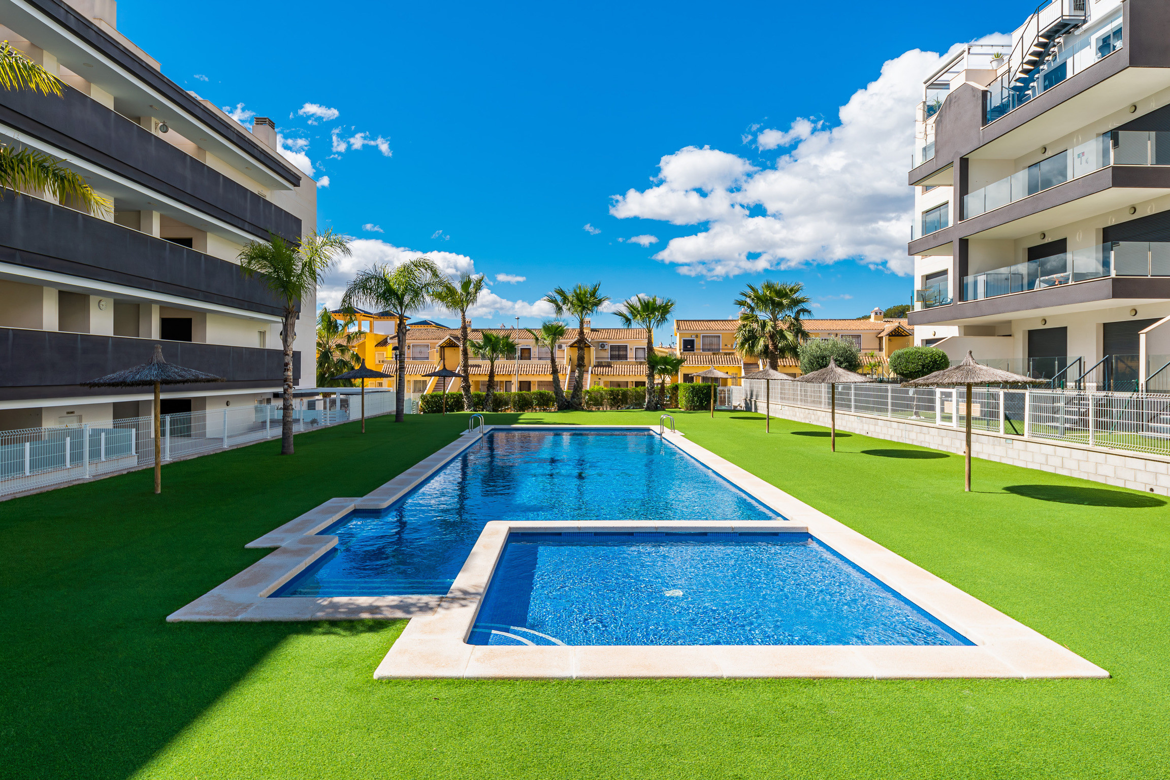 Entdecken Sie diese moderne Erdgeschosswohnung in Villamartín (Orihuela Costa), ideal zum Genießen des mediterranen Klimas. Sie verfügt über 2 Schlafzimmer, 2 Badezimmer, eine ausgestattete Küche und ein lichtdurchflutetes Wohnzimmer mit Zugang zu einer geräumigen privaten Terrasse mit Blick auf den Pool, perfekt zum Entspannen.