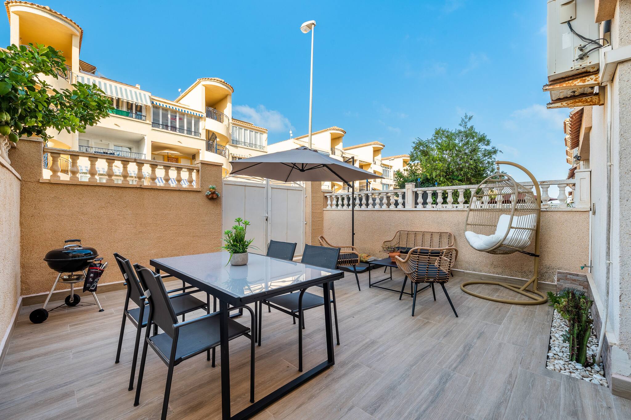 Die Ferienwohnung in Orihuela Costa verfügt über 3 Schlafzimmer und hat eine Kapazität für 6 Person(en). Unterkunft verfügt über 100 m². Die Unterkunft verfügt über eine Waschmaschine, einen Kamin, ein Bügeleisen/-brett, ein Internetanschluss (WLAN), ein Föhn, eine Klimaanlage, ein Privatpool, 1 Fernseher.Die Separate Küche mit Induktions-Kochfeld ist ausgestattet in einen Kühlschrank, eine Mikrowelle, ein Backofen, Gefrierschrank, Geschirr/Besteck, Kochutensilien, eine Kaffeemaschine, einen Toaster und einen Wasserkocher.