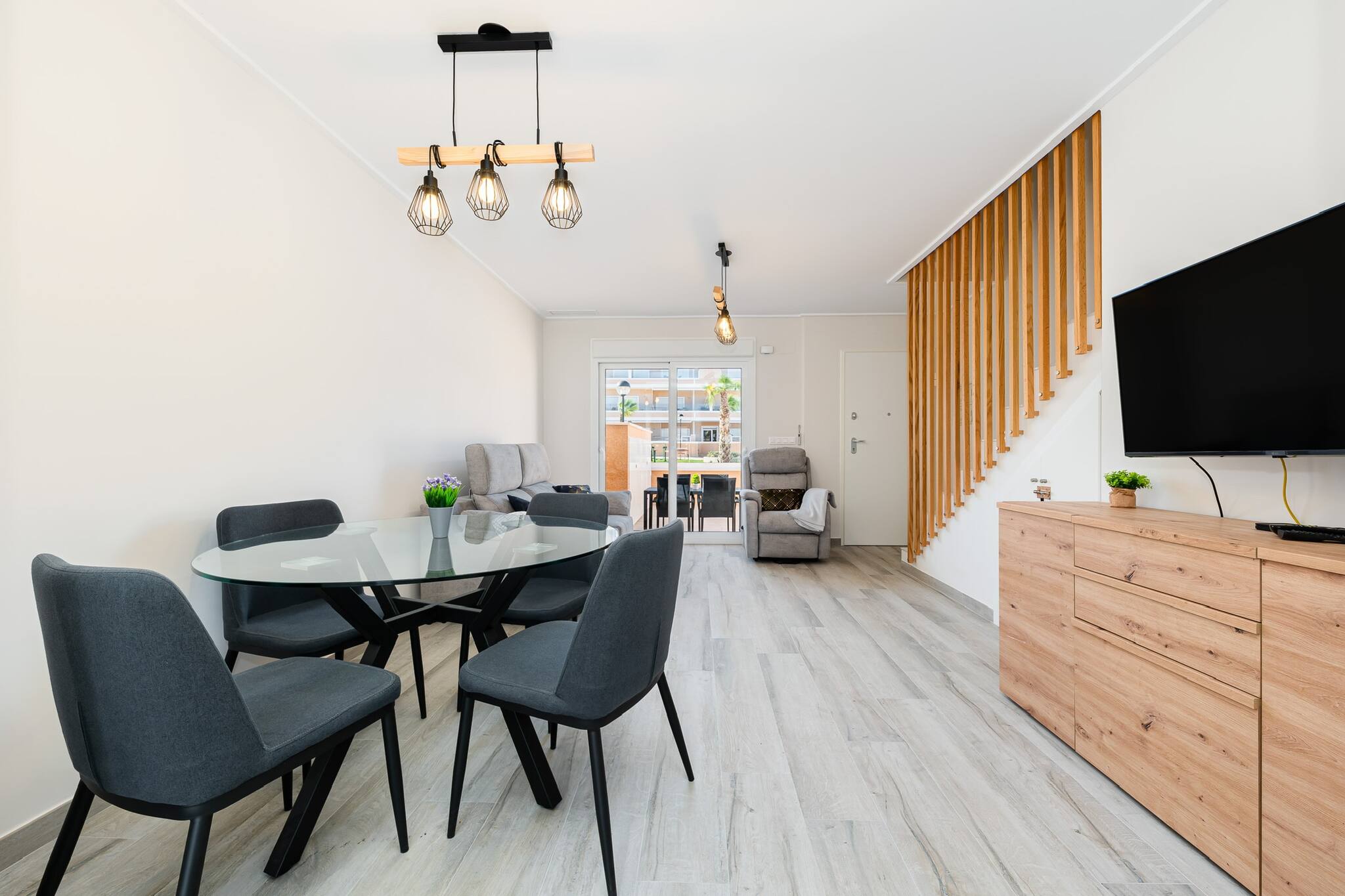 Die Ferienwohnung in Torre de la Horadada verfügt über 3 Schlafzimmer und hat eine Kapazität für 6 Person(en). Die komfortable und grosszügige Unterkunft verfügt über 130 m². Die Unterkunft befindet sich 200 m vom zum Sandstrand "Playa de Las Higuericas" entfernt, 350 m vom zum Sandstrand "Playa del Mojón", 600 m vom Kiesstrand "Zonas rocosas del Mojón", 1 km vom Supermarkt "Supermercados locales", 2 km vom zum Sandstrand "Playa del Puerto", 2 km vom zum Sandstrand "Playa de los Jesuitas", 2 km vom Kiesstrand "Rocamar", 2 km vom Supermarkt "Mercadona", 2 km von der Stadt "Torre de la Horadada centro", 3 km von der Stadt "Pilar de la Horadada", 3 km vom Supermarkt "Lidl", 3 km von der Stadt "San Pedro del Pinatar", 4 km von der Stadt "Mil Palmeras", 7 km vom Golfplatz "Lo Romero Golf", 8 km vom Golfplatz "Campoamor Golf", 9 km vom Golfplatz "Las Ramblas", in einem Wohngebiet und am Meer. Die Unterkunft verfügt über eine Waschmaschine, ein Internetanschluss (WLAN), eine Wärmepumpe, eine Klimaanlage, ein Privatpool, 1 Fernseher. Die Separate Küche mit Induktions-Kochfeld ist ausgestattet in einen Kühlschrank, eine Mikrowelle, ein Backofen, Gefrierschrank, Geschirr/Besteck, Kochutensilien, eine Kaffeemaschine, einen Toaster und einen Wasserkocher.