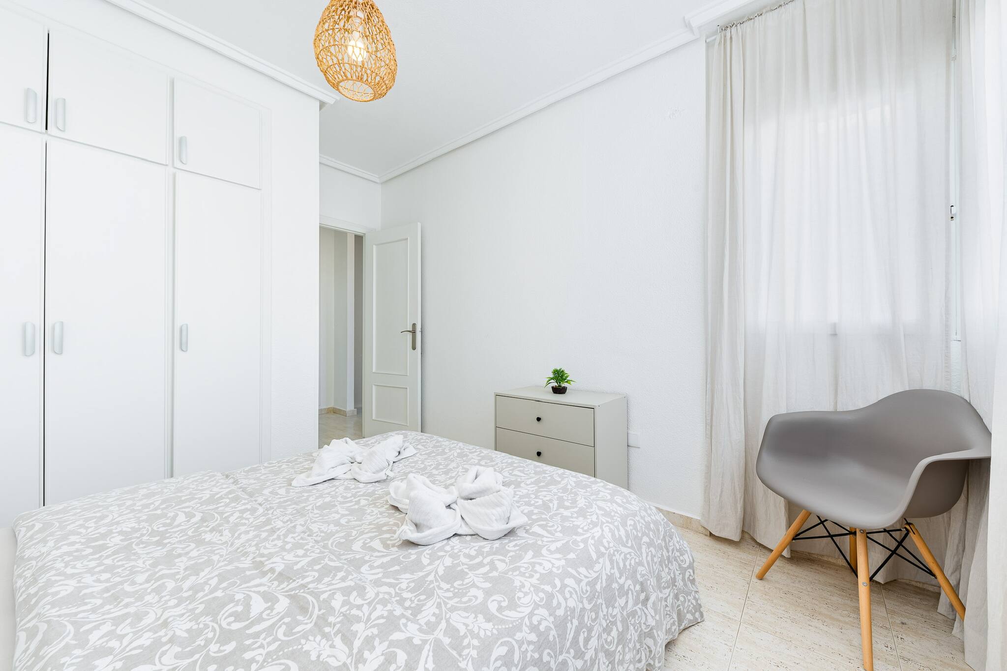 Die Ferienwohnung in Torrevieja verfügt über 2 Schlafzimmer und hat eine Kapazität für 5 Person(en). Die komfortable und sonnige Unterkunft verfügt über 70 m². Die Unterkunft befindet sich 200 m vom zum Sandstrand "Playa de Los Locos" entfernt, 200 m vom Supermarkt "Consum", 200 m vom Supermarkt "Dialprix", 300 m vom Kiesstrand "Cala del Palangre", 300 m vom Kiesstrand "Playa de Los Locos", 800 m vom Supermarkt "Mercadona", 900 m vom zum Sandstrand "Playa del Cura", 1 km von der Stadt "Centro de Torrevieja", 10 km vom Golfplatz "Villamartín Golf", 13 km vom Golfplatz "La Marquesa Golf", in einem Wohngebiet und am Meer.Die Unterkunft verfügt über eine Waschmaschine, ein Internetanschluss (WLAN), eine Wärmepumpe, eine Klimaanlage, ein Privatpool, 1 Fernseher.Die Separate Küche mit Induktions-Kochfeld ist ausgestattet in einen Kühlschrank, eine Mikrowelle, ein Backofen, Gefrierschrank, eine Spülmaschine, Geschirr/Besteck, Kochutensilien, eine Kaffeemaschine und einen Toaster.