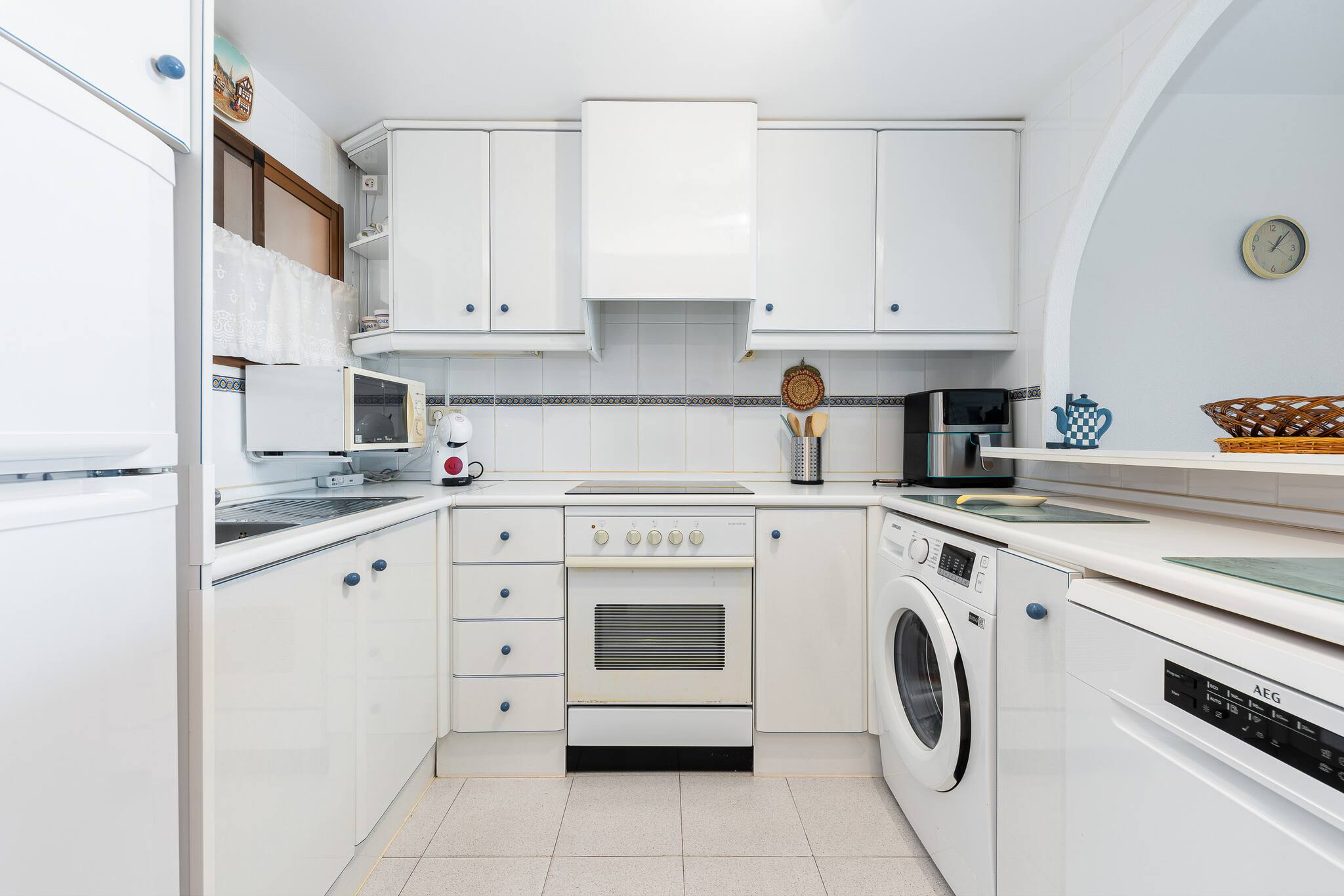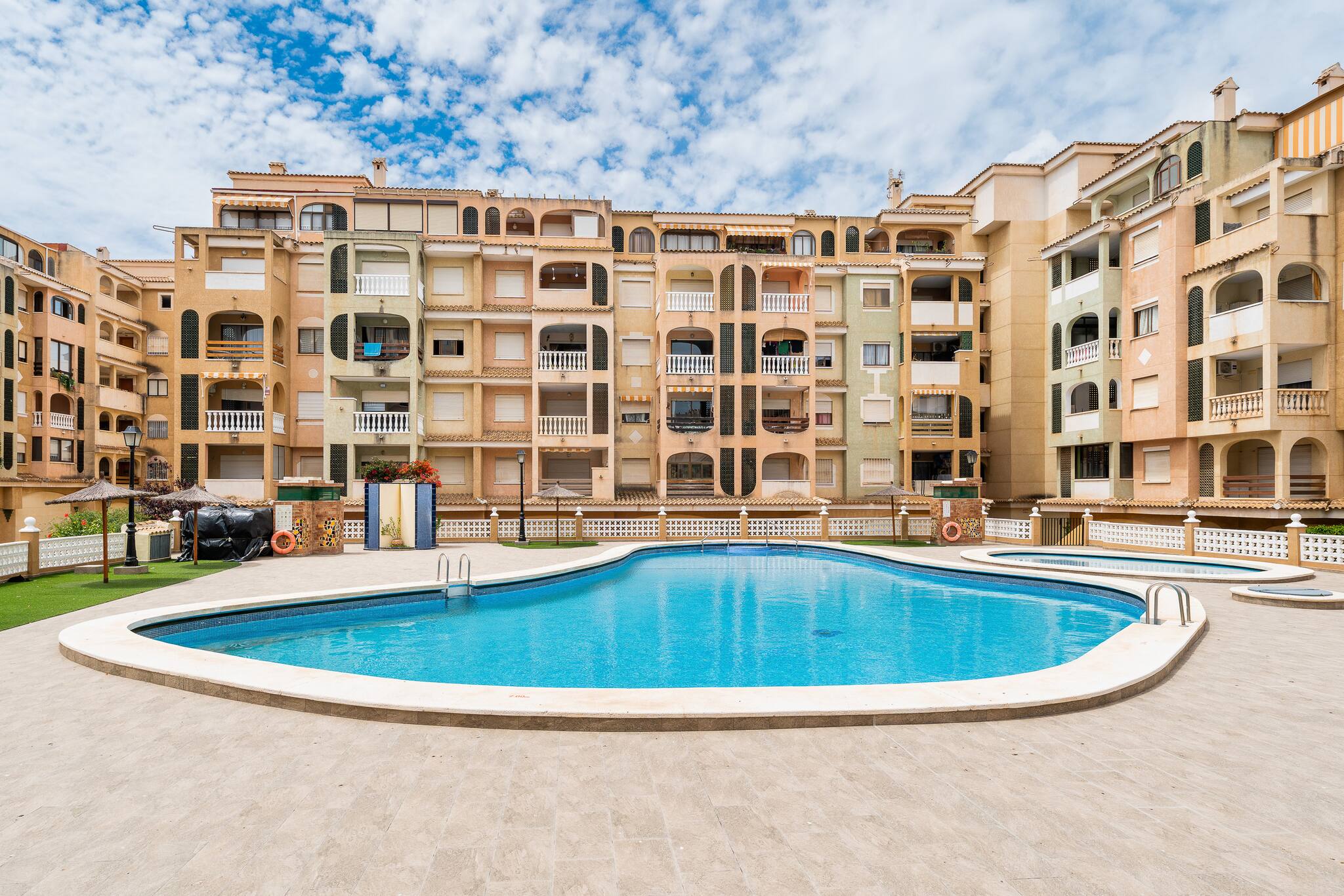 Die Ferienwohnung in Torrevieja verfügt über 2 Schlafzimmer und hat eine Kapazität für 5 Person(en). Die komfortable und sonnige Unterkunft verfügt über 65 m². Die Unterkunft befindet sich 300 m vom Supermarkt "Mercadona" entfernt, 300 m vom Supermarkt "Día", 800 m vom Supermarkt "Consum", 800 m von der Stadt "Centro Torrevieja", 1 km vom zum Sandstrand "Playa del Acequión", 2 km vom zum Sandstrand "Playa de Los Náufragos", 2 km vom zum Sandstrand "Playa del Cura", 2 km vom Kiesstrand "Paseo Marítimo", 3 km vom Kiesstrand "Calas de Los Locos", 3 km vom zum Sandstrand "Playa de Los Locos", 3 km vom Kiesstrand "Cala Ferrís", 5 km von der Stadt "La Mata", 10 km vom Golfplatz "Villamartín Golf", 11 km vom Golfplatz "Las Ramblas", 12 km vom Golfplatz "Campoamor Golf", 14 km vom Golfplatz "Vistabella Golf", in einem Wohngebiet und im Zentrum.Die Unterkunft verfügt über einen Aufzug, eine Waschmaschine, ein Bügeleisen/-brett, ein Internetanschluss (WLAN), ein Föhn, eine Wärmepumpe, eine Klimaanlage, eine Garage, 1 Fernseher.Die Offene Küche mit Induktions-Kochfeld ist ausgestattet in einen Kühlschrank, eine Mikrowelle, ein Backofen, Gefrierschrank, Geschirr/Besteck, Kochutensilien und eine Kaffeemaschine.
