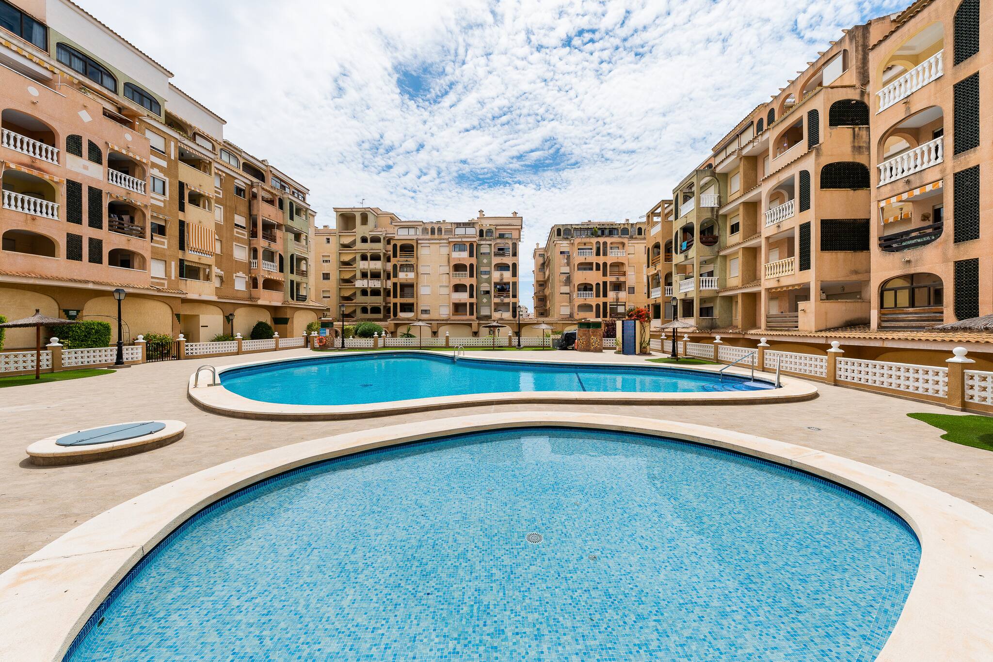 Die Ferienwohnung in Torrevieja verfügt über 2 Schlafzimmer und hat eine Kapazität für 5 Person(en). Die komfortable und sonnige Unterkunft verfügt über 65 m². Die Unterkunft befindet sich 300 m vom Supermarkt "Mercadona" entfernt, 300 m vom Supermarkt "Día", 800 m vom Supermarkt "Consum", 800 m von der Stadt "Centro Torrevieja", 1 km vom zum Sandstrand "Playa del Acequión", 2 km vom zum Sandstrand "Playa de Los Náufragos", 2 km vom zum Sandstrand "Playa del Cura", 2 km vom Kiesstrand "Paseo Marítimo", 3 km vom Kiesstrand "Calas de Los Locos", 3 km vom zum Sandstrand "Playa de Los Locos", 3 km vom Kiesstrand "Cala Ferrís", 5 km von der Stadt "La Mata", 10 km vom Golfplatz "Villamartín Golf", 11 km vom Golfplatz "Las Ramblas", 12 km vom Golfplatz "Campoamor Golf", 14 km vom Golfplatz "Vistabella Golf", in einem Wohngebiet und im Zentrum. Die Unterkunft verfügt über einen Aufzug, eine Waschmaschine, ein Bügeleisen/-brett, ein Internetanschluss (WLAN), ein Föhn, eine Wärmepumpe, eine Klimaanlage, eine Garage, 1 Fernseher. Die Offene Küche mit Induktions-Kochfeld ist ausgestattet in einen Kühlschrank, eine Mikrowelle, ein Backofen, Gefrierschrank, Geschirr/Besteck, Kochutensilien und eine Kaffeemaschine.
