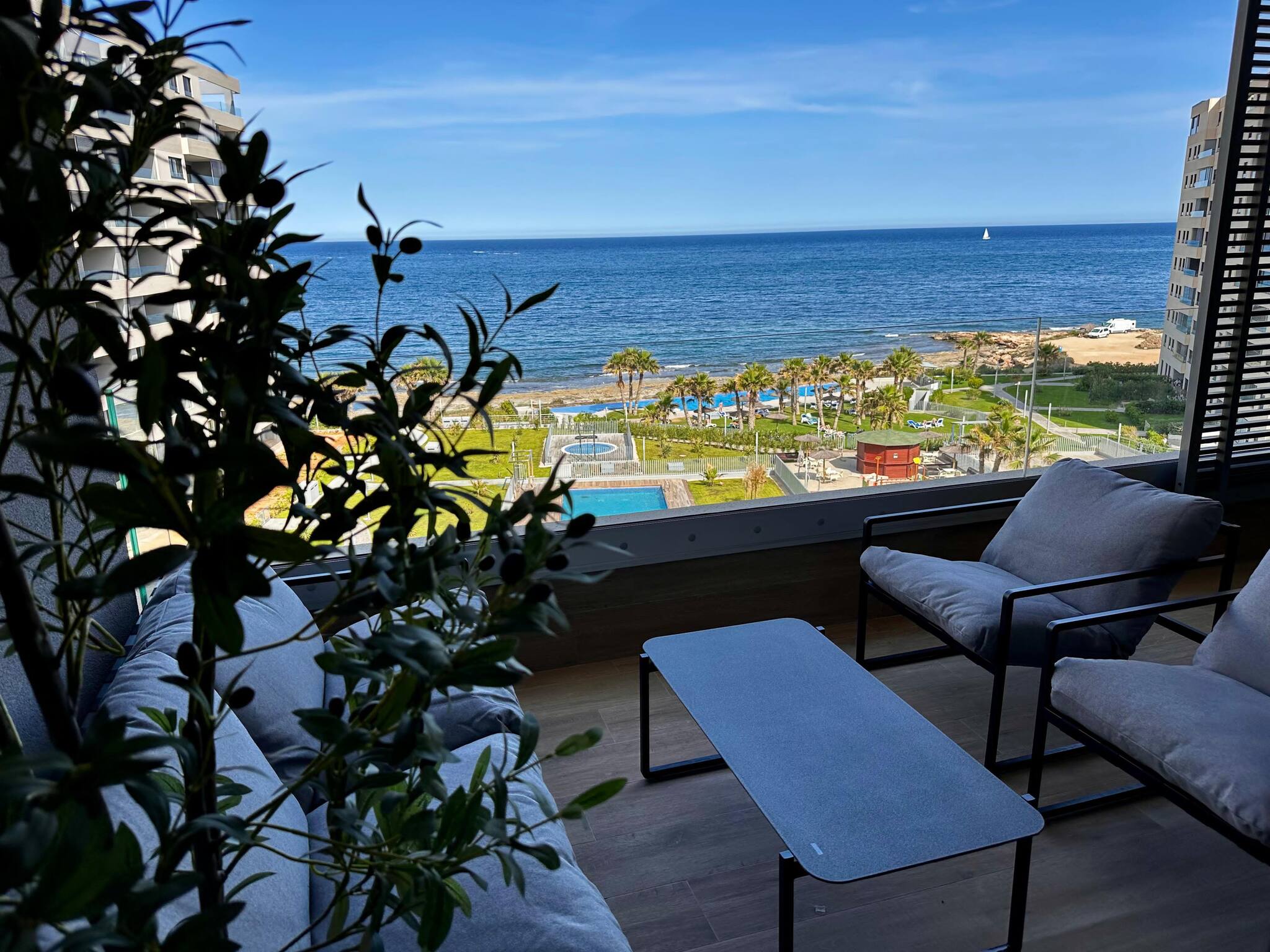 Die Ferienwohnung in Torrevieja verfügt über 2 Schlafzimmer und hat eine Kapazität für 4 Person(en). Unterkunft verfügt über 82 m². Die Unterkunft verfügt über eine Waschmaschine, ein Internetanschluss (WLAN), ein Föhn, eine Wärmepumpe, eine Klimaanlage, ein Privatpool, eine Garage, 1 Fernseher.Die Offene Küche mit Induktions-Kochfeld ist ausgestattet in einen Kühlschrank, eine Mikrowelle, ein Backofen, Gefrierschrank, Geschirr/Besteck, Kochutensilien, eine Kaffeemaschine, einen Toaster und einen Wasserkocher.