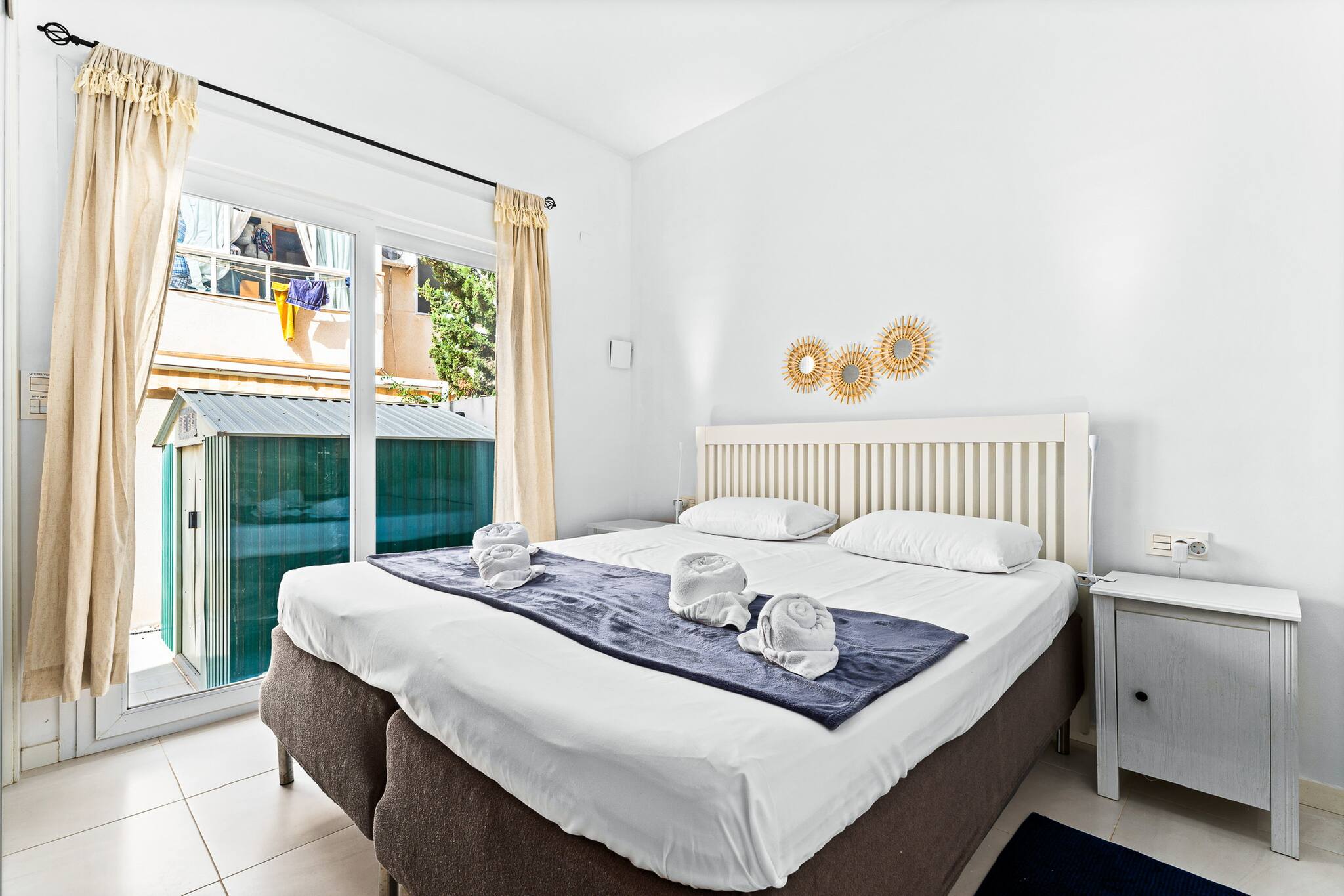 Die Ferienwohnung in Torrevieja verfügt über 2 Schlafzimmer und hat eine Kapazität für 6 Person(en). Unterkunft verfügt über 70 m². Die Unterkunft verfügt über Gartenmöbel, eine Waschmaschine, ein Bügeleisen/-brett, ein Internetanschluss (WLAN), ein Föhn, eine Klimaanlage, 1 Fernseher.Die Offene Küche mit Induktions-Kochfeld ist ausgestattet in eine Mikrowelle, ein Backofen, Gefrierschrank, Geschirr/Besteck, Kochutensilien, eine Kaffeemaschine, einen Toaster und einen Wasserkocher.