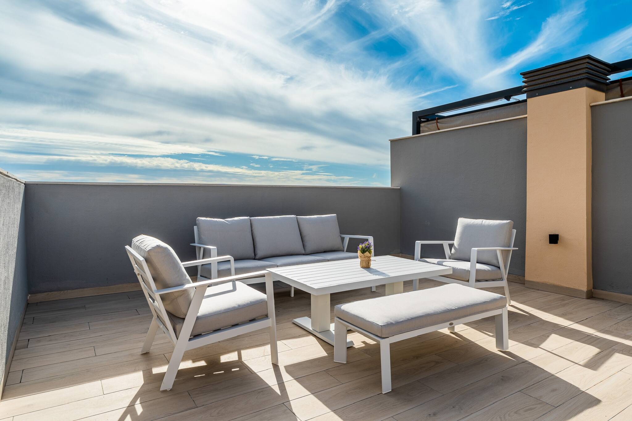 Modern apartment in apartment in Los Of Alcáz,ares with elegant elegant design, large windows large windows and and private ter. terrace. Features a luminliving room, equipped kitchen equipped kitchen kitchen, air conditioning and exterior dining dining area. Ideal for enjoying the the tranquillity of the Mar Or Minor. Perfect for a getfor or family.getaway.