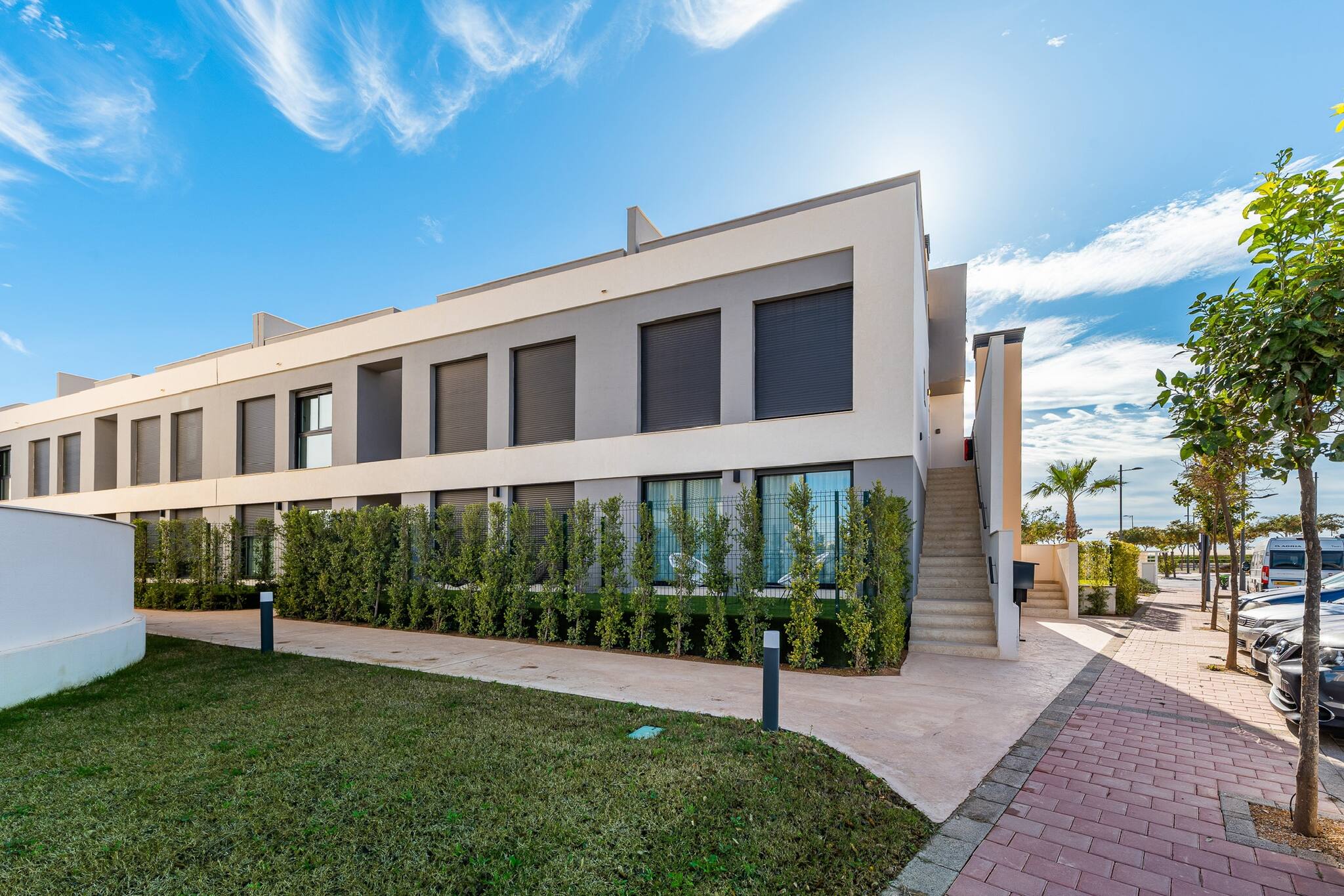 Discover this modern ground floor apartment in Los Alcázares, one of the most pleasant areas of the Mar Menor. It features 2 bedrooms, 2 bathrooms, a fully equipped kitchen and a bright living room with direct access to the terrace and private pool, as well as a communal pool. It is ideal for families or couples looking for comfort, design and proximity to the sea.