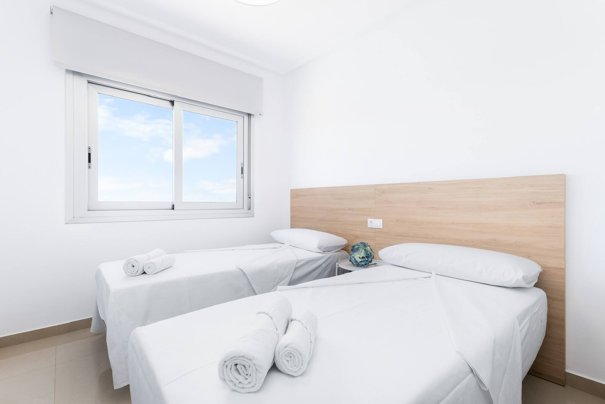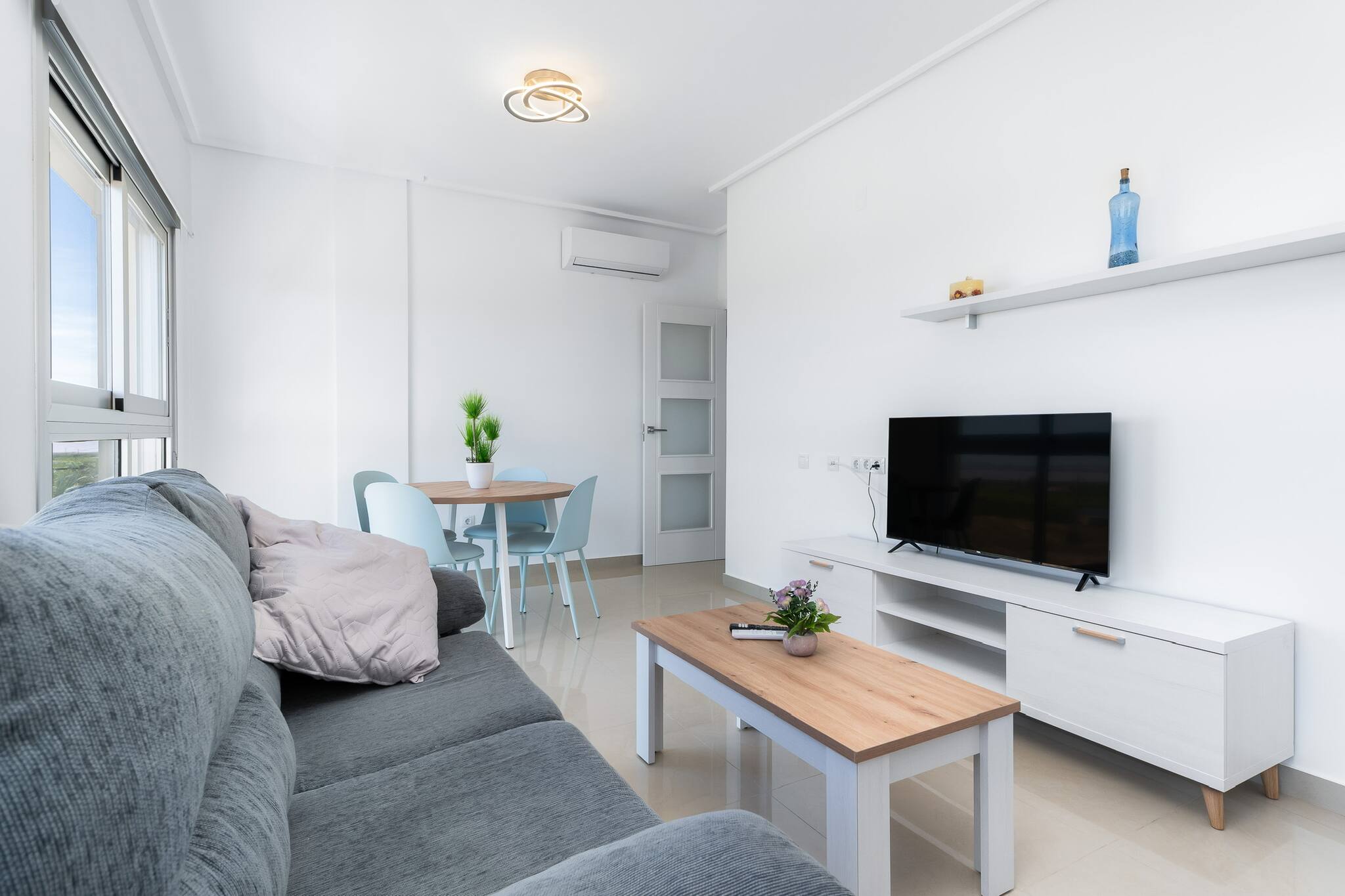 Cosy and bright apartment in Los Montesinos, perfect for a peaceful stay. It has two spacious bedrooms with double beds, a full bathroom, a comfortable living room and a fully equipped kitchen. The building offers a communal rooftop pool with clear views. Located in a quiet area, close to supermarkets, cafés and services, and with excellent connections to visit Torrevieja and the coast.