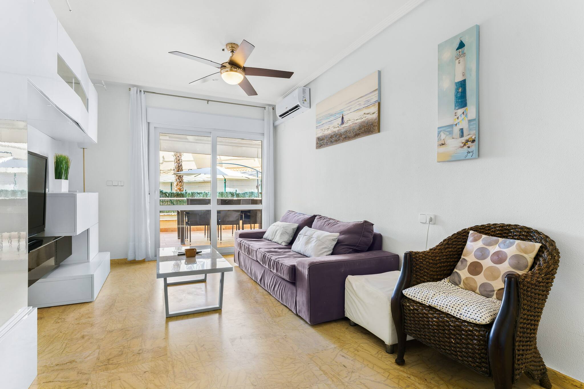 This charming two-bedroom apartment is perfect for a relaxing holiday. With air conditioning, a cosy terrace with an outdoor dining area, and access to a communal swimming pool and tennis courts, it offers everything you need to enjoy to the fullest. Just three minutes' walk from Aguamarina cove, the Orihuela seafront promenade and the lively Cabo Roig market, the location is ideal for exploring the area. Ideal for couples or families looking for proximity to the sea.