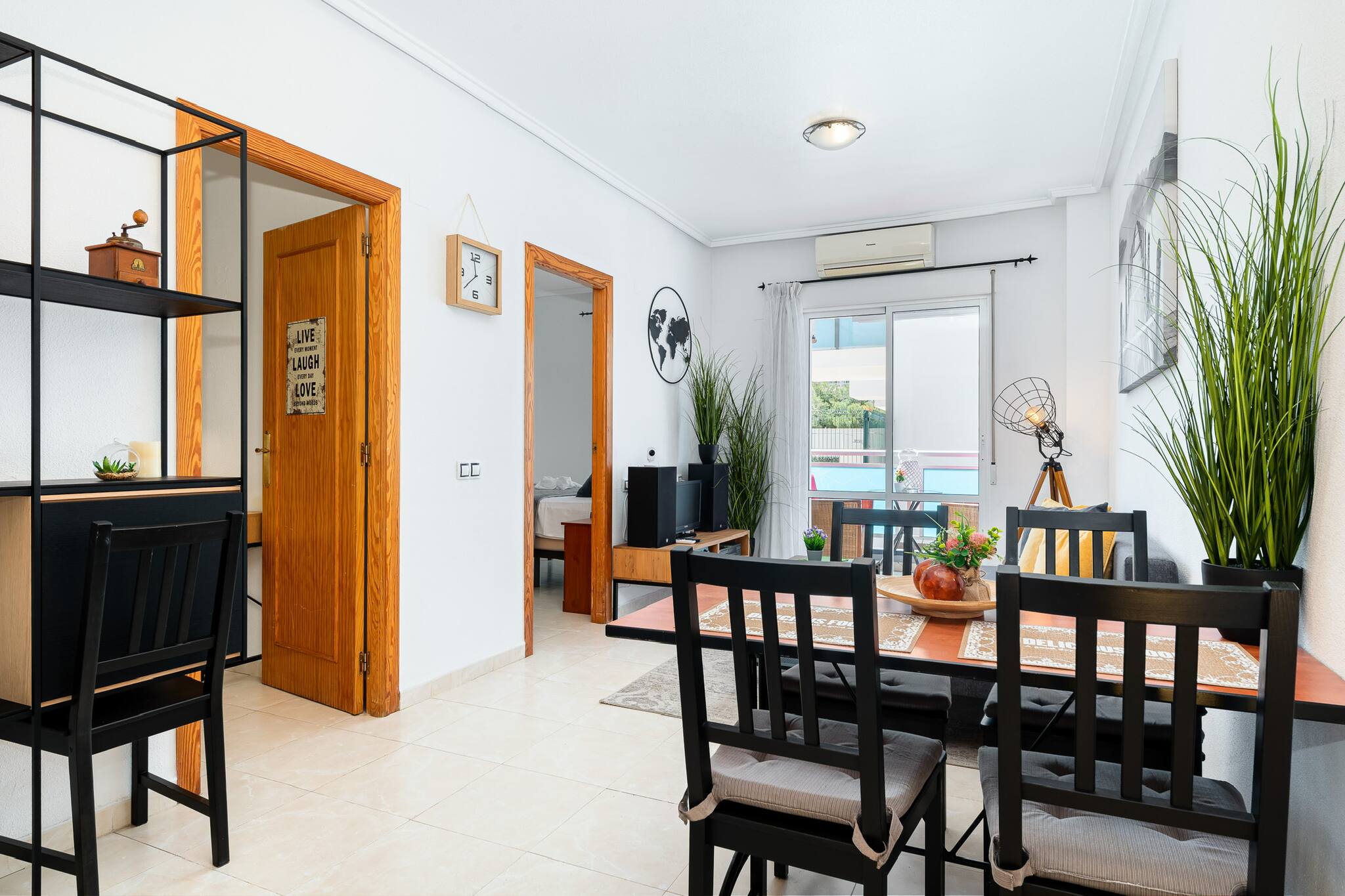 Modern 65 m² apartment in Botanical Garden, ideal for families or couples. It has 2 bedrooms, parking space, communal swimming pool, lift and terrace. Excellent location near the centre of Torrevieja, with supermarkets, services and Parque de las Naciones just steps away. Just a few minutes by car or transport from beaches such as El Cura, Los Náufragos or Acequión. Perfect for enjoying without worries.