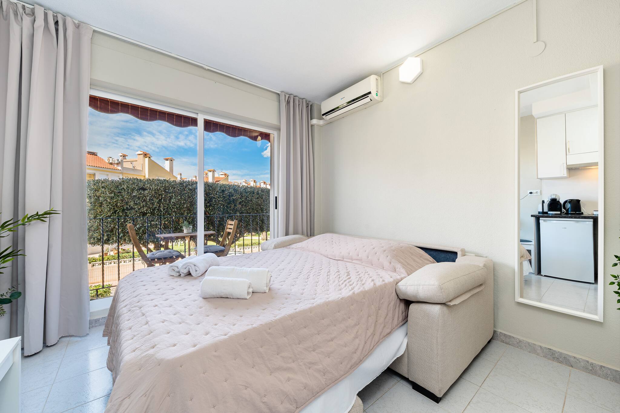 The accommodation is designed to offer maximum comfort and functionality. The decoration is modern and fresh, and the studio has been equipped with high-quality furniture and decorative elements.