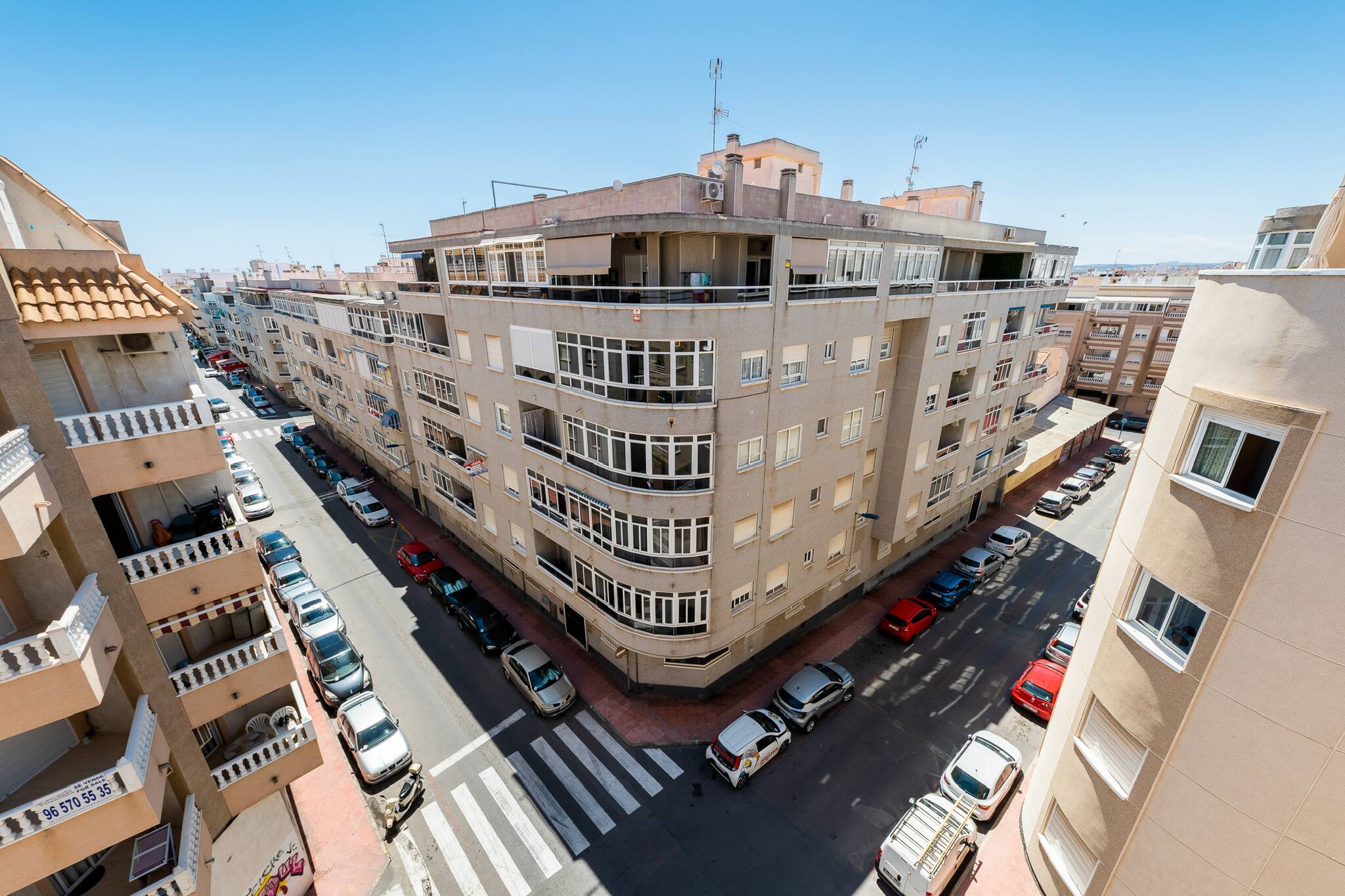 The property is bathed in natural light and decorated with cosy simplicity, designed to offer a practical and pleasant stay. The communal swimming pool invites a refreshing swim after a day at the beach or a stroll through the lively centre of Torrevieja.