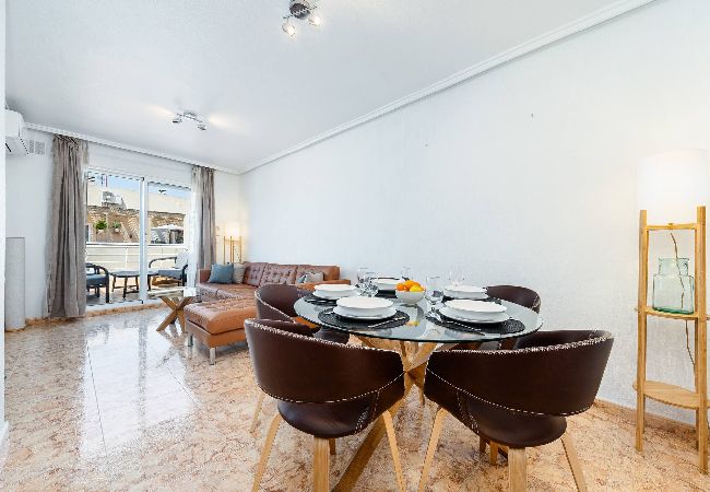 Bright and sunny attic in the heart of Torrevieja. With 3 bedrooms, spacious terrace with views, and communal swimming pool. Just a few metres from the best leisure areas and the beach, it is one of the few attics available for holiday rental in the area. With all amenities, air conditioning, fully equipped kitchen and WiFi. A short distance away you have a supermarket and bus station. Designed for rest and fun with family or a group of friends. Don't miss this opportunity!