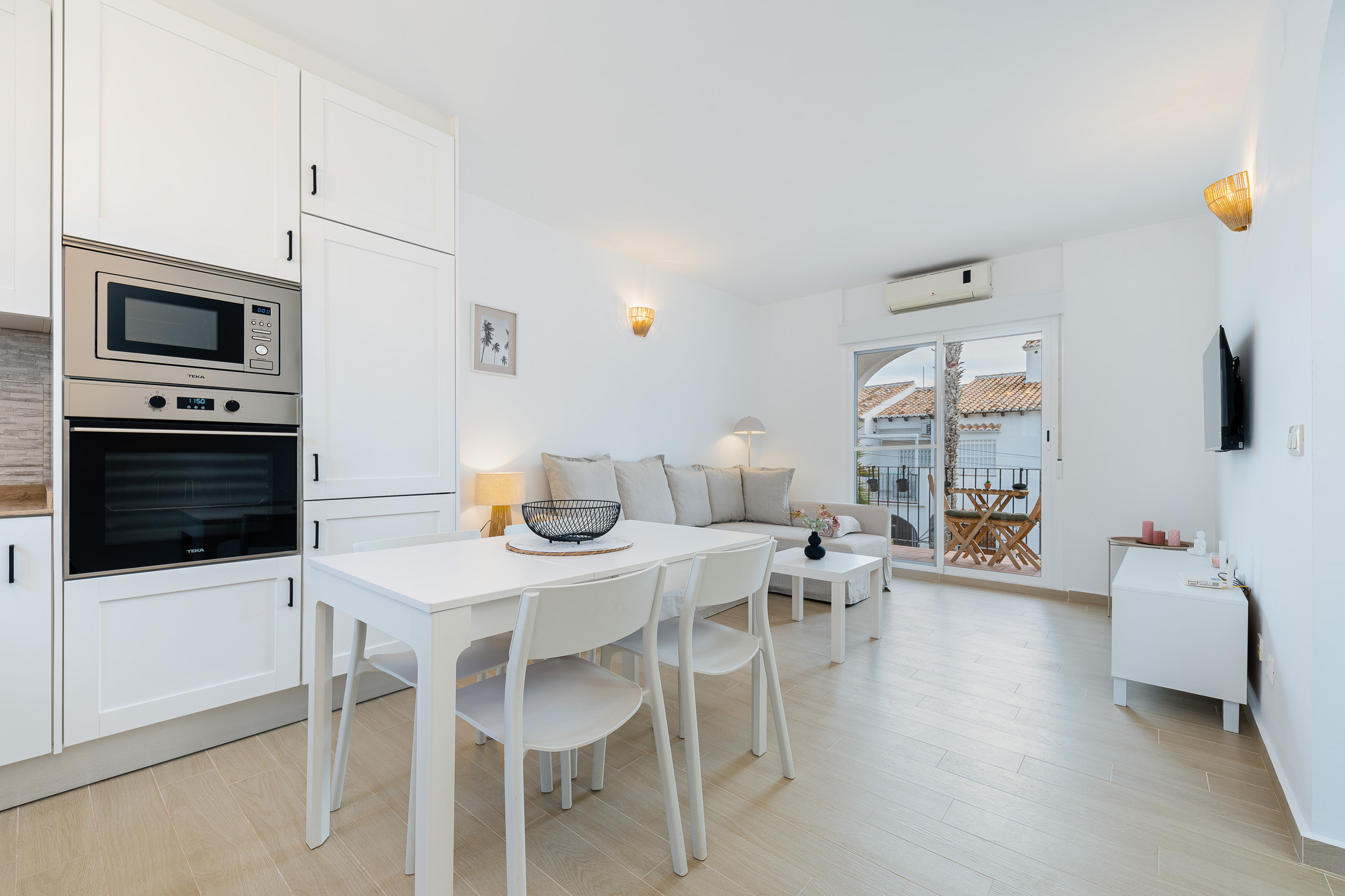 The property is bright and functional, with a comfortable and well-distributed living-dining room, fully equipped open kitchen, double bedroom with good natural light entry and complete bathroom. It is located on the ground floor, which facilitates access and provides greater comfort. Its decoration in neutral tones creates a pleasant and relaxing atmosphere, ideal for holidays or seasonal stays.