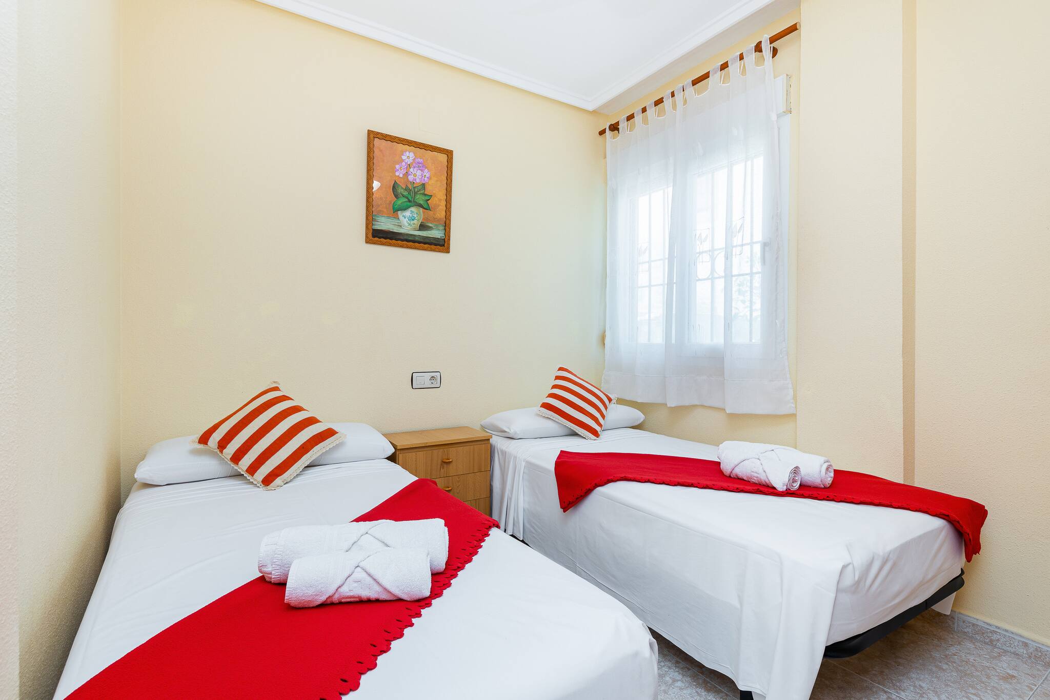 Cosy holiday apartment for 4 people in Parque de las Naciones, Torrevieja. It has 2 bedrooms (1 double bed and 2 single beds), full bathroom, porch, outdoor dining area and barbecue. Additionally, it features a communal swimming pool and is close to beaches, shops and leisure areas. Ideal for enjoying the sun and tranquillity.