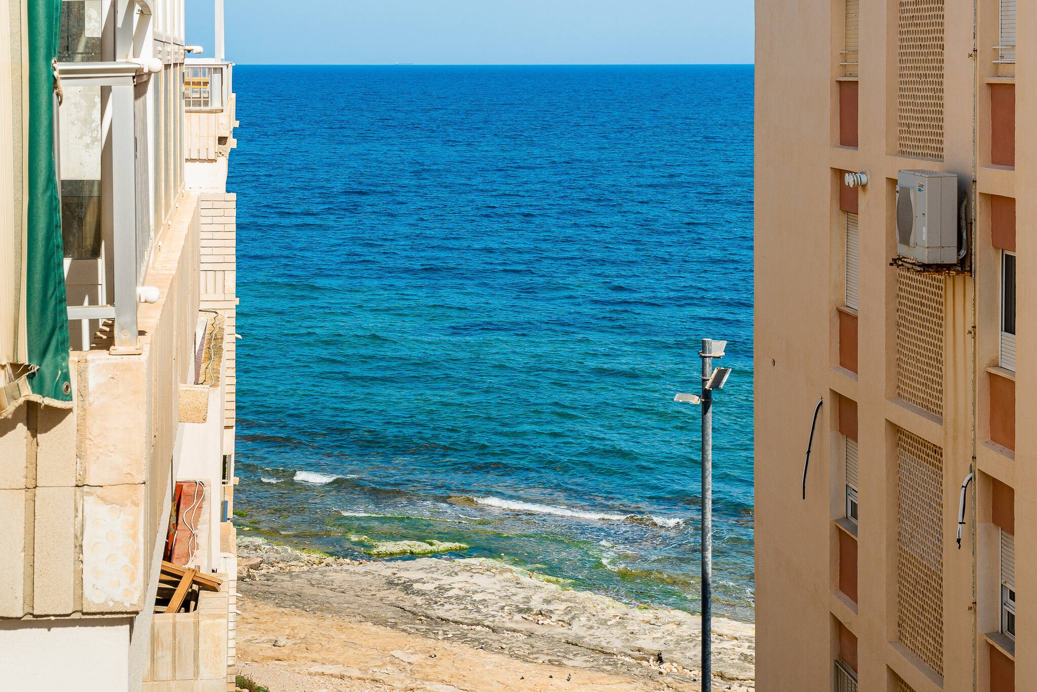 Comfortable and bright apartment on the 5th floor, located just a few steps from Cura Beach. Enjoy sea views from its terrace and an unbeatable location in the heart of Torrevieja, with supermarkets, restaurants and leisure areas at a short distance. Ideal for enjoying the Mediterranean without the need for a car. Although in the heart of the city, its height and orientation guarantee peace and tranquillity. Your family will have everything at hand in this accommodation located in the city centre.