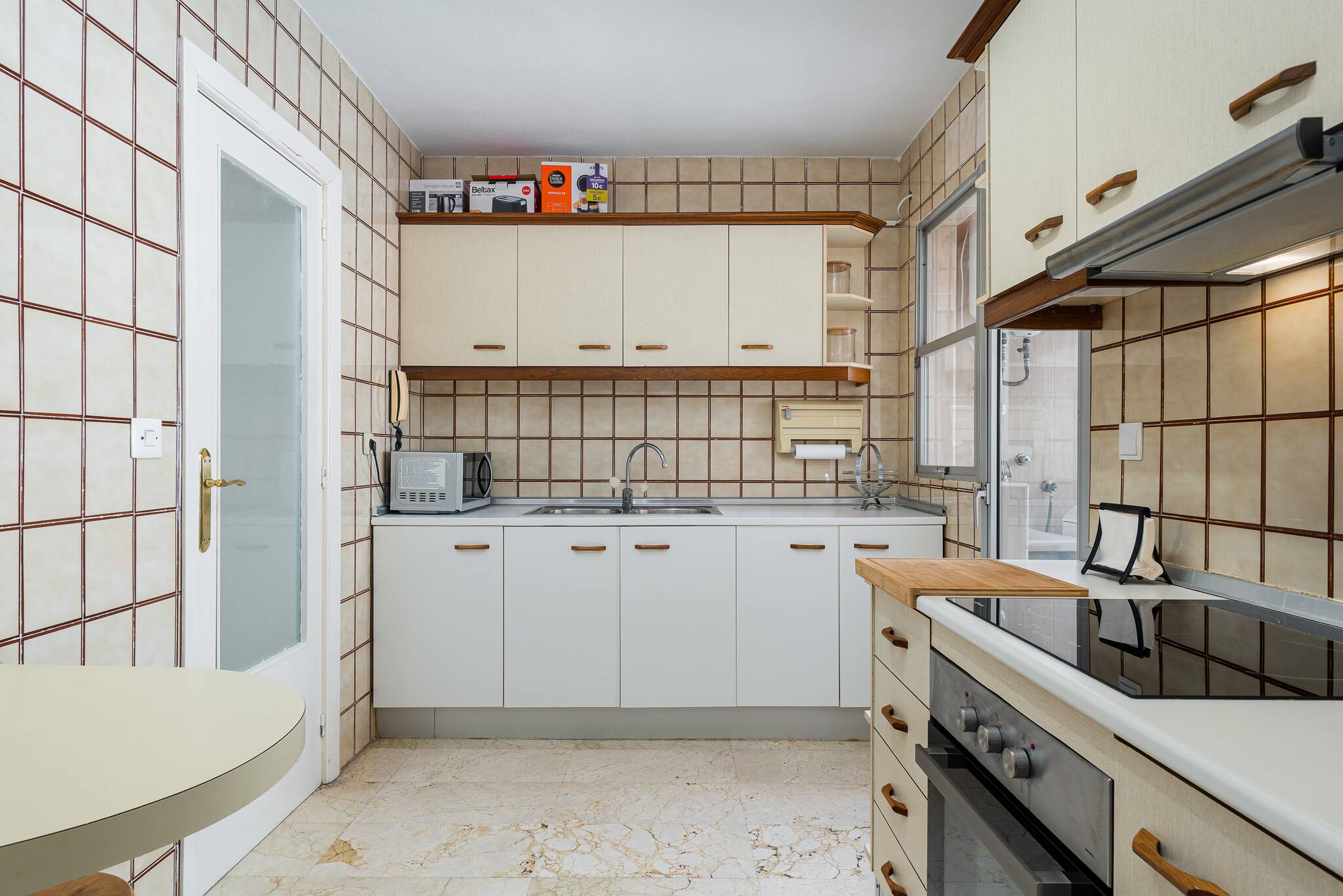 The kitchen is equipped with the main appliances (coffee maker, microwave, oven, fridge and ceramic hob), and the living room has a Smart TV.
