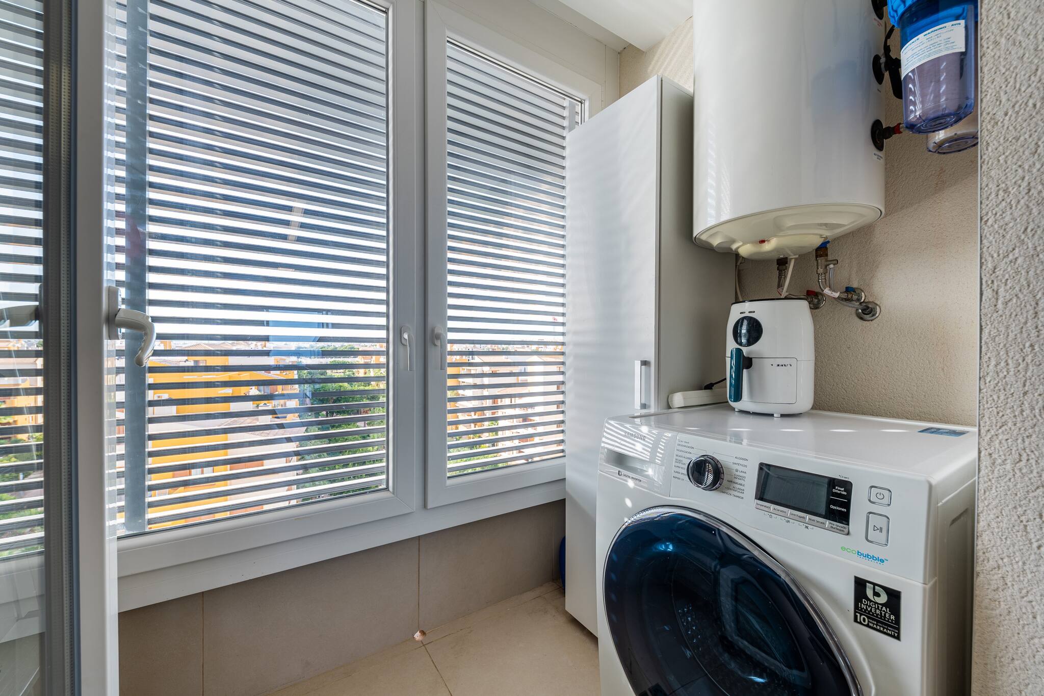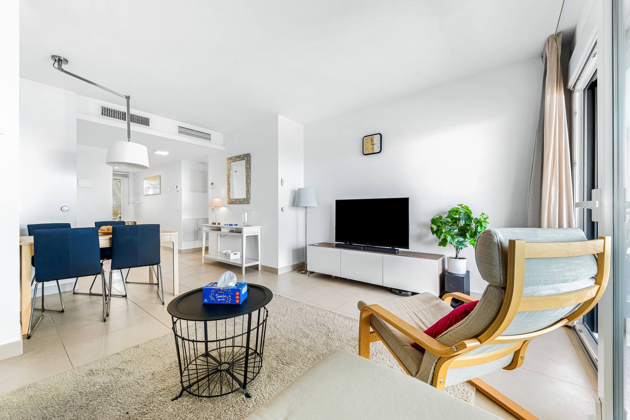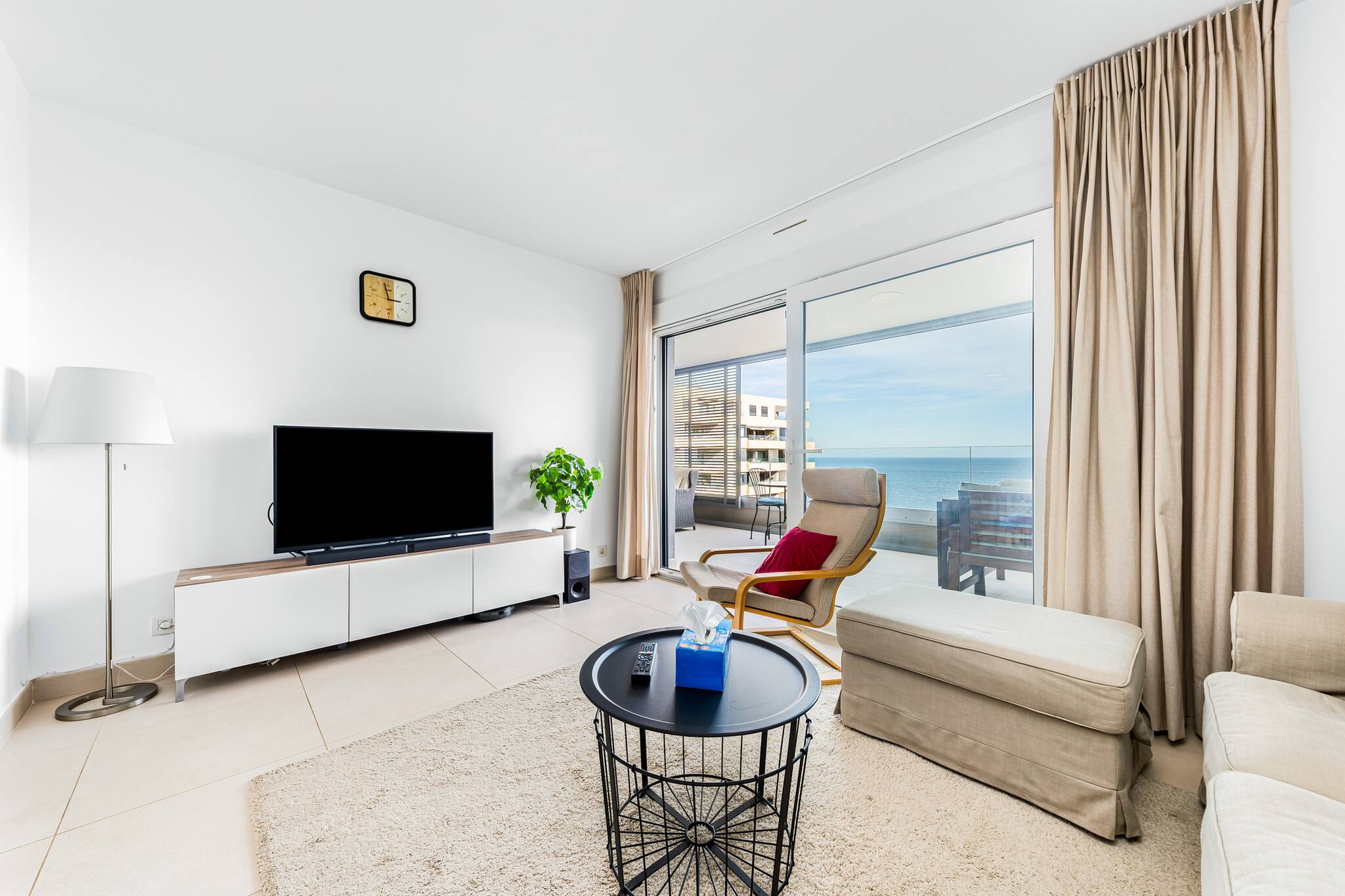 Enjoy this elegant apartment within a well-maintained residential complex facing the sea. Located in one of the best areas of the city, it combines tranquillity, nature and easy access to beaches, shops and leisure. The residential complex features swimming pools, spacious green areas and direct access to the seafront promenade. The property offers a modern and bright interior, terrace with open views of the Mediterranean, cosy living room, fully equipped kitchen and all the amenities for a perfect stay.