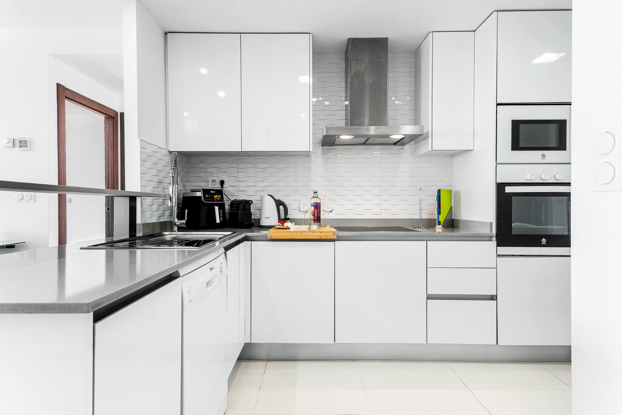 The kitchen is equipped with the main appliances (coffee maker, microwave, oven, fridge and ceramic hob), and the living room has a Smart TV.
