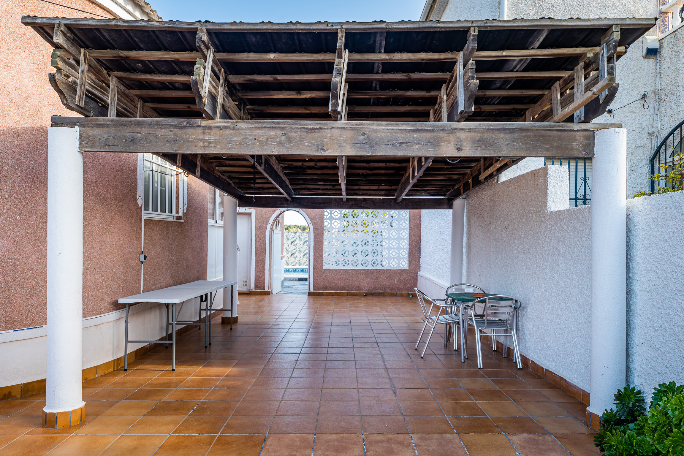 One of the great attractions of the house is its extensive outdoor space, where you can enjoy a private pool, a large terrace to relax or eat outdoors and a covered porch-type area ideal for the hottest days.