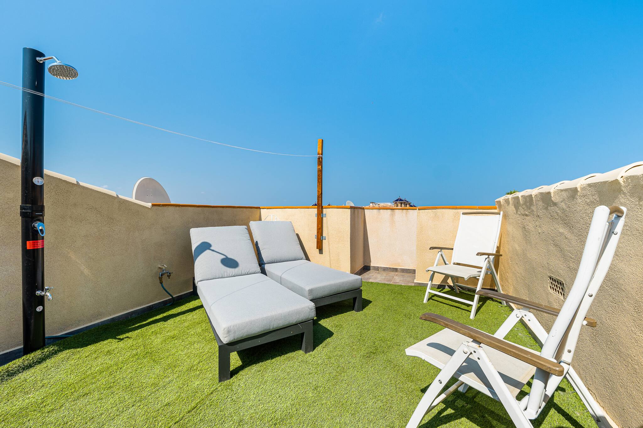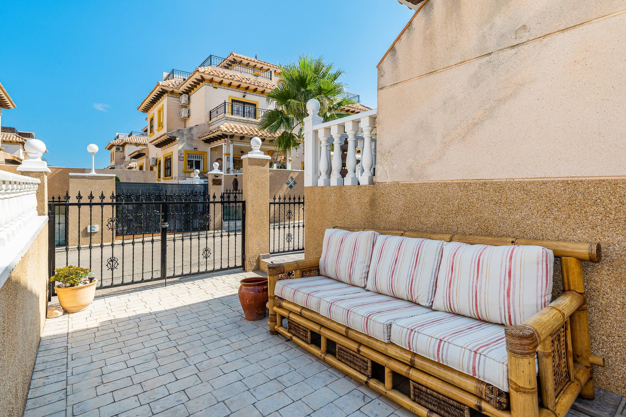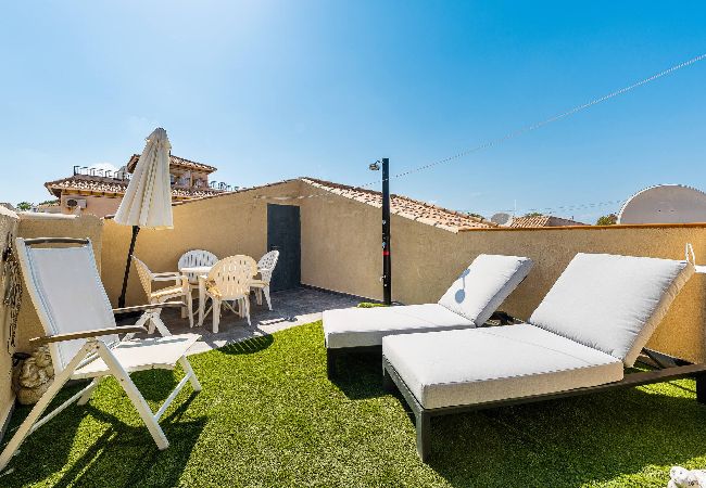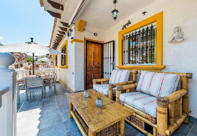 Enjoy a relaxing stay in this modern house in Villamartรญn, Orihuela Costa. With 3 bedrooms, 1 bathroom, fully equipped kitchen and a spacious living room with access to a terrace, it is perfect for families or groups. The urbanisation has a communal swimming pool and green areas. A few minutes from beaches, golf courses, restaurants and shopping centres. Ideal for enjoying the sun and tranquillity of the Costa Blanca.