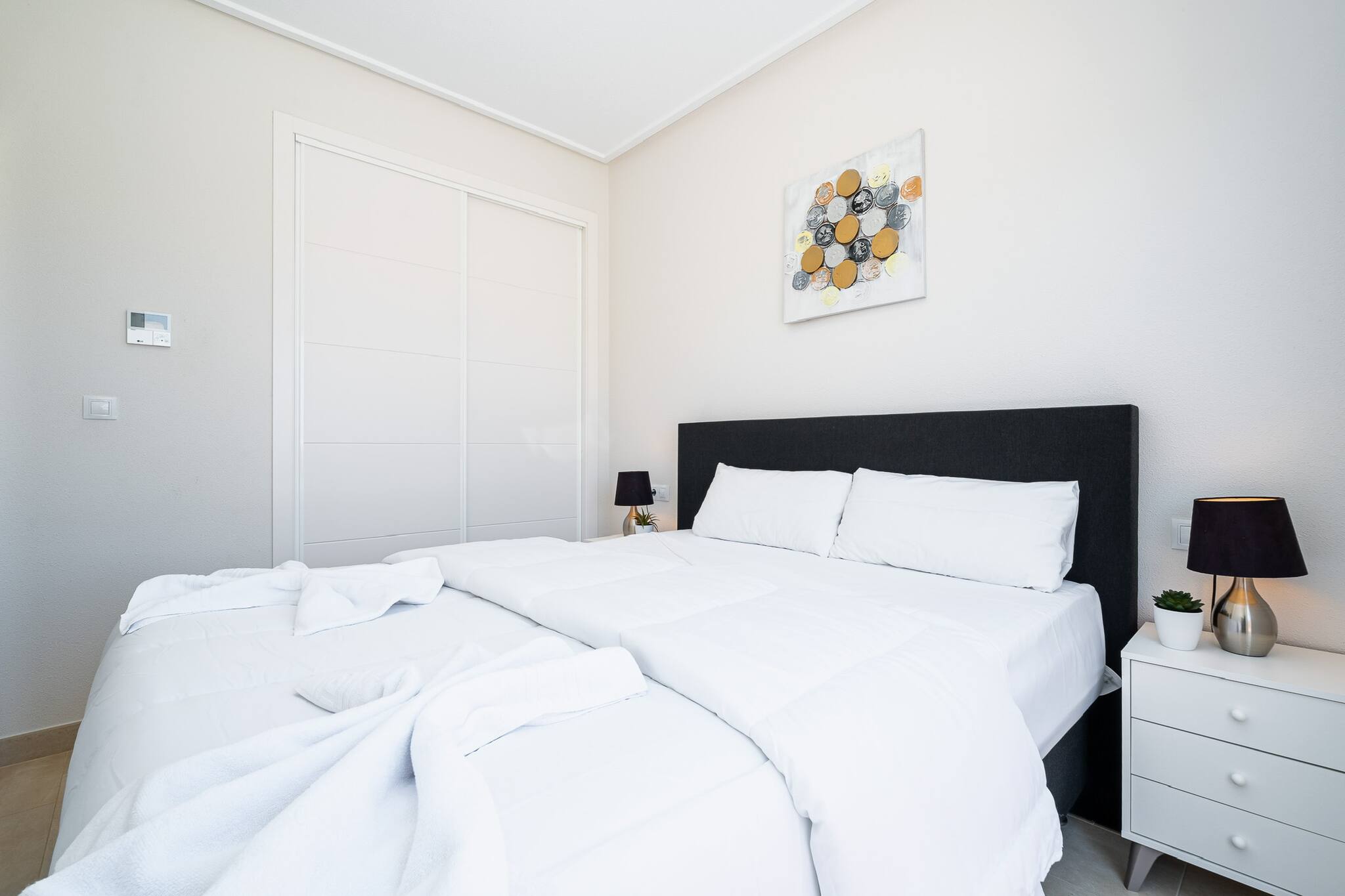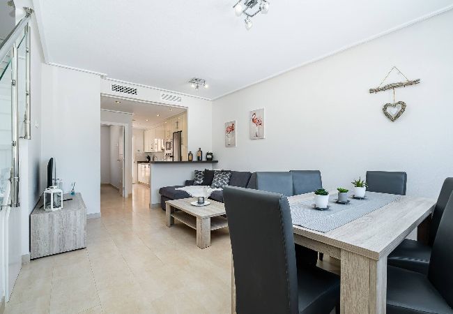 Disconnect in this unique refuge in Dehesa de Campoamor, just a 10-minute walk from Mil Palmeras beach. It features 2 bedrooms (1 double bed and 2 single beds). Enjoy a private pool and a terrace with sun loungers to relax. Its modern and cosy interior has a spacious living room with a sofa bed, air conditioning and two comfortable rooms. Ideal for families or friends, this accommodation combines relaxation and comfort in a privileged location near tourist attractions.