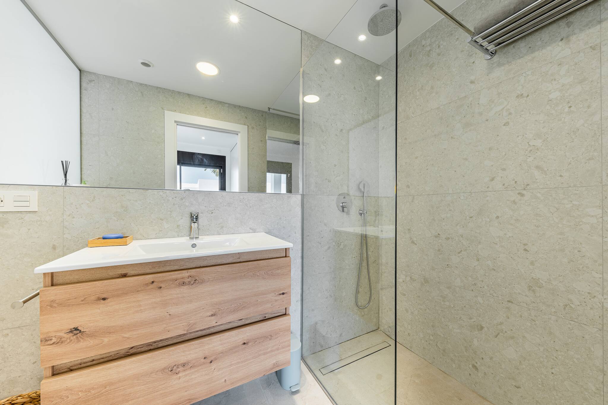Il dispose de trois chambres spacieuses, toutes équipées de lits doubles, offrant confort et intimité pour jusqu'à six invités. Chaque pièce a été conçue pour garantir repos, spaciosité et bien-être, avec des matériaux et des meubles de grande qualité.