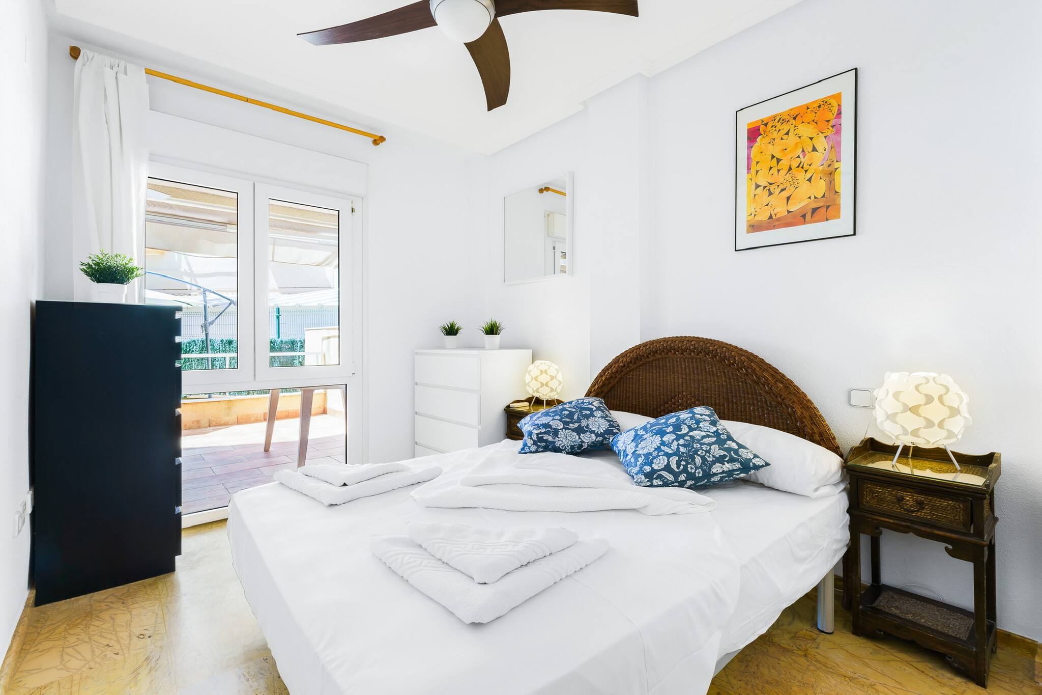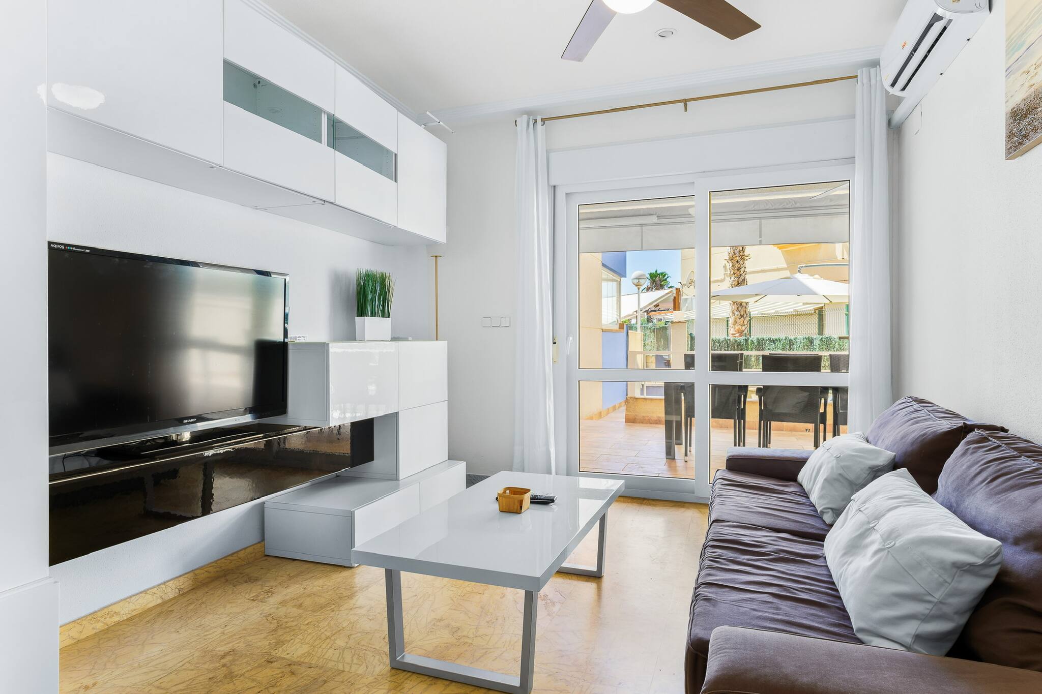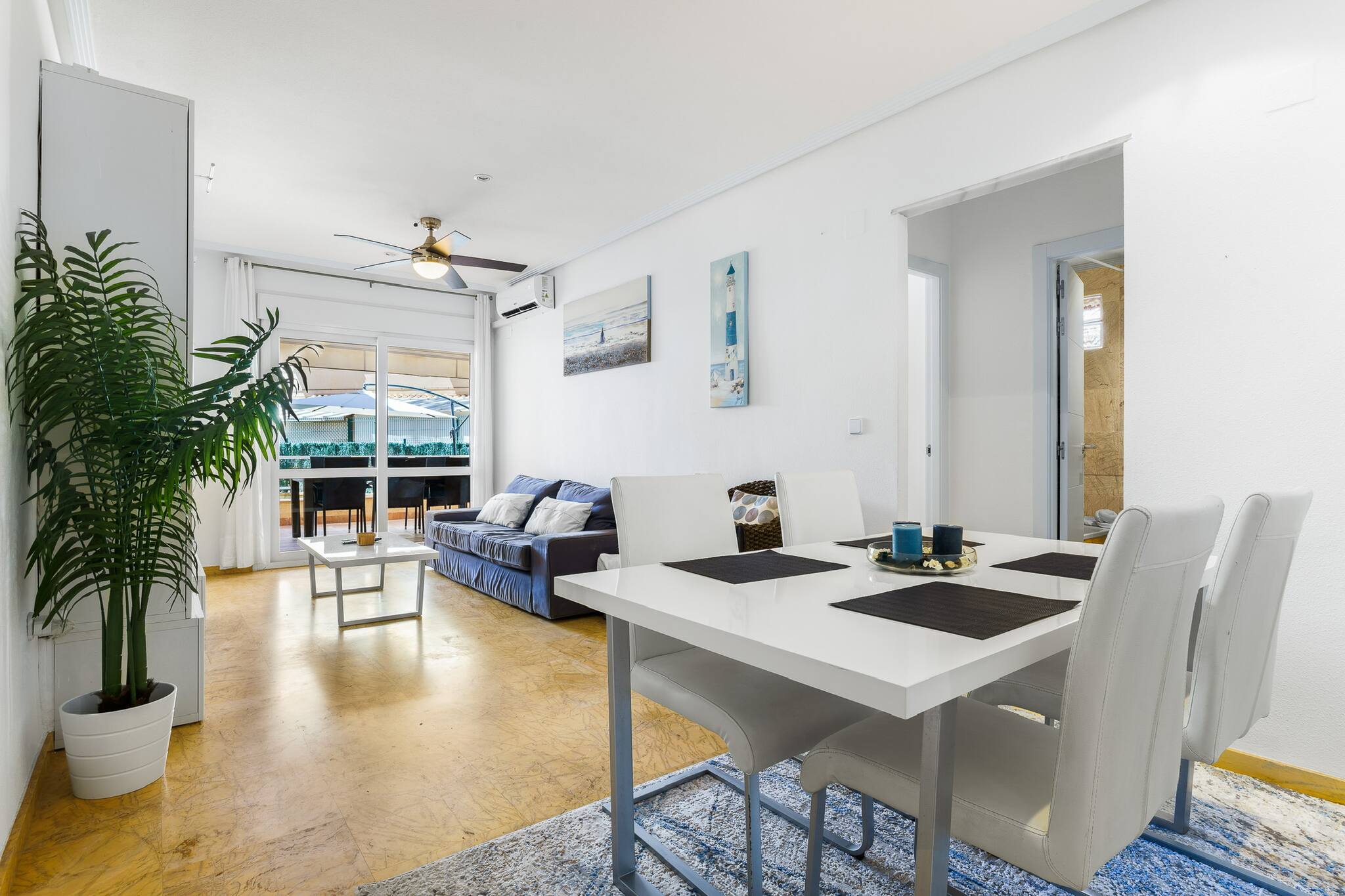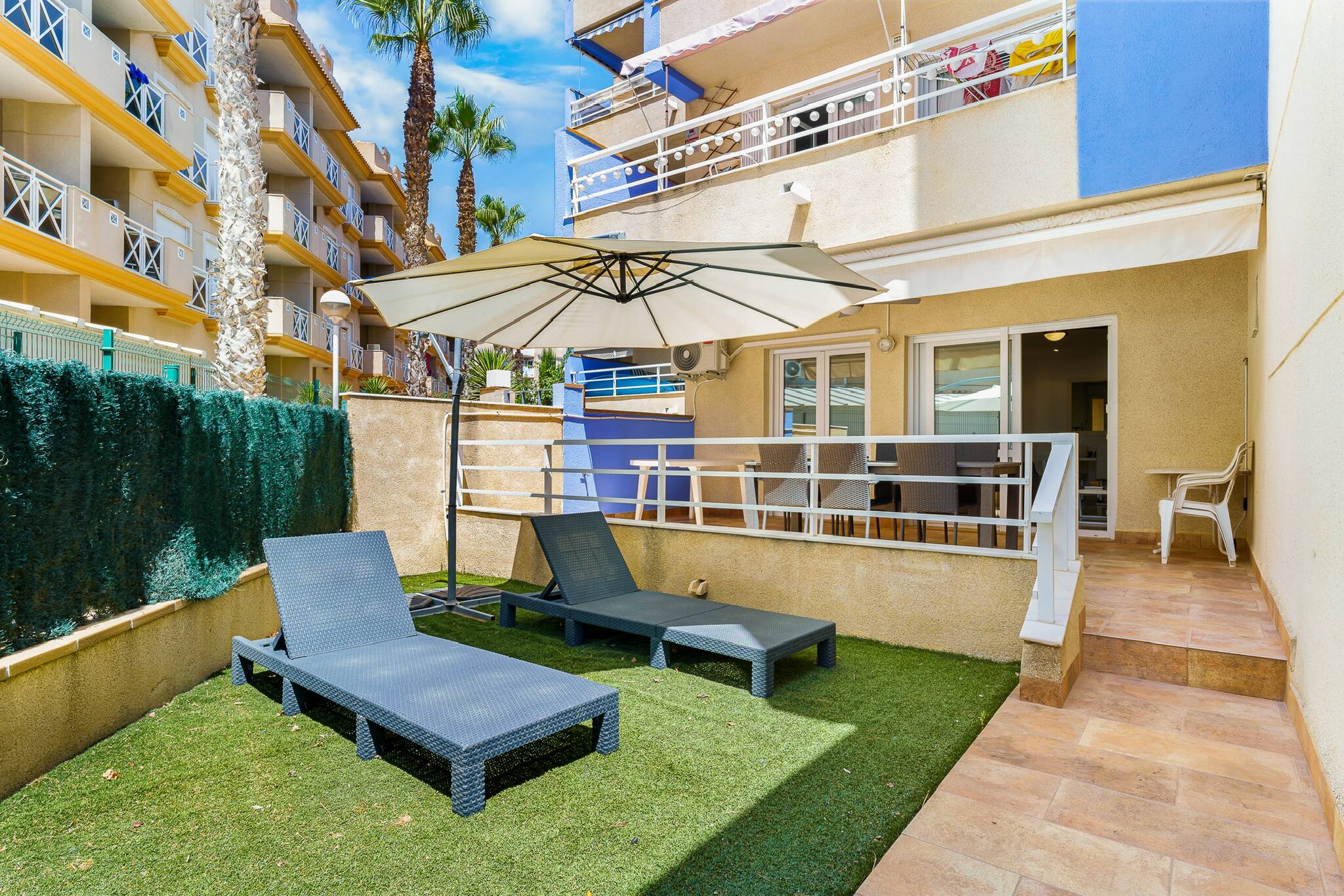 Ce charmant appartement de deux chambres est parfait pour des vacances relaxantes. Avec la climatisation, une terrasse accueillante avec une zone de repas extérieure, et l'accès à une piscine communautaire et des courts de tennis, il offre tout ce dont vous avez besoin pour profiter pleinement. À seulement trois minutes à pied de la calanque d'Aguamarina, du front de mer d'Orihuela et du marché animé de Cabo Roig, l'emplacement est idéal pour explorer la région. Idéal pour les couples ou les familles qui recherchent la proximité de la mer.
