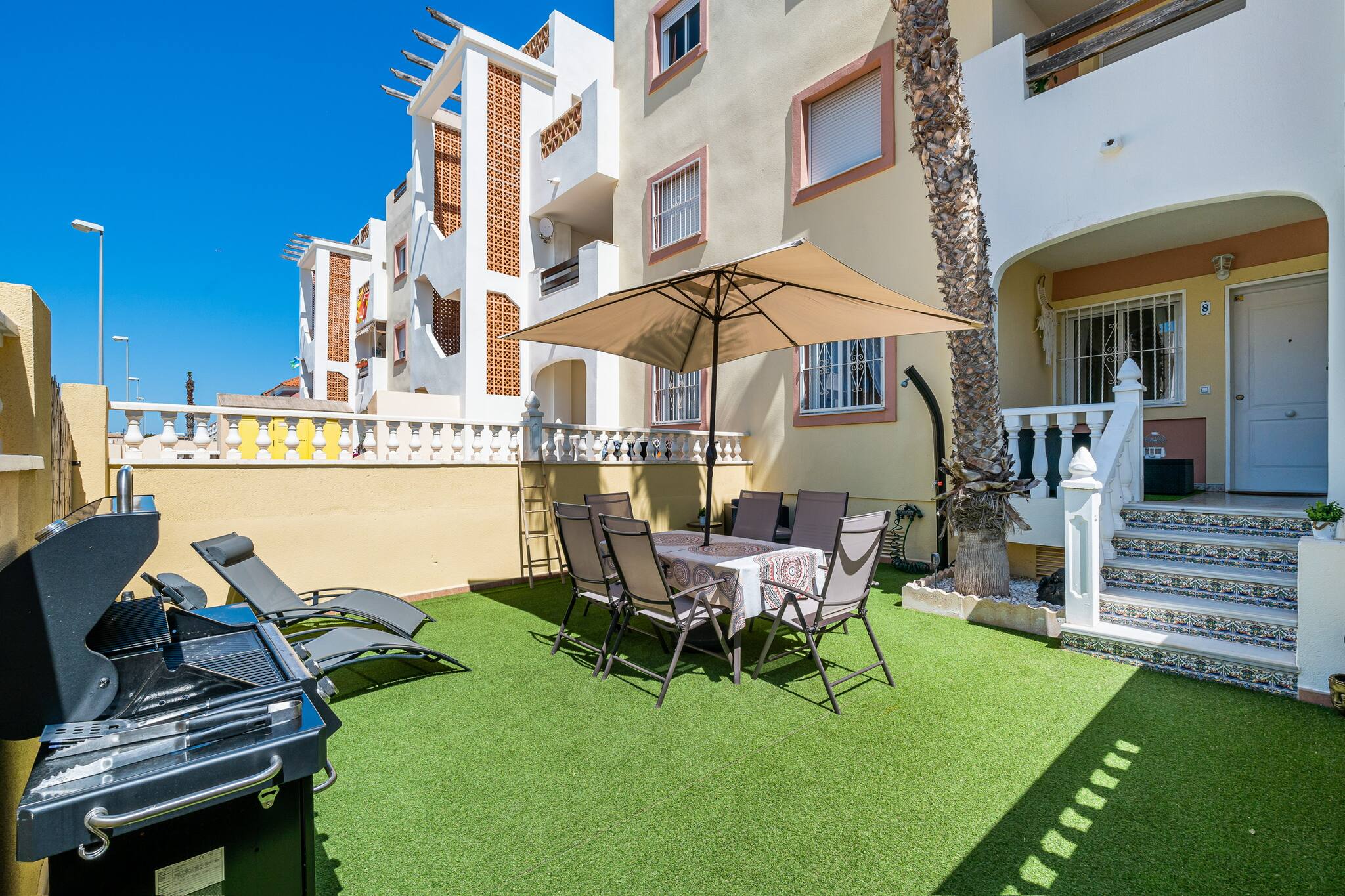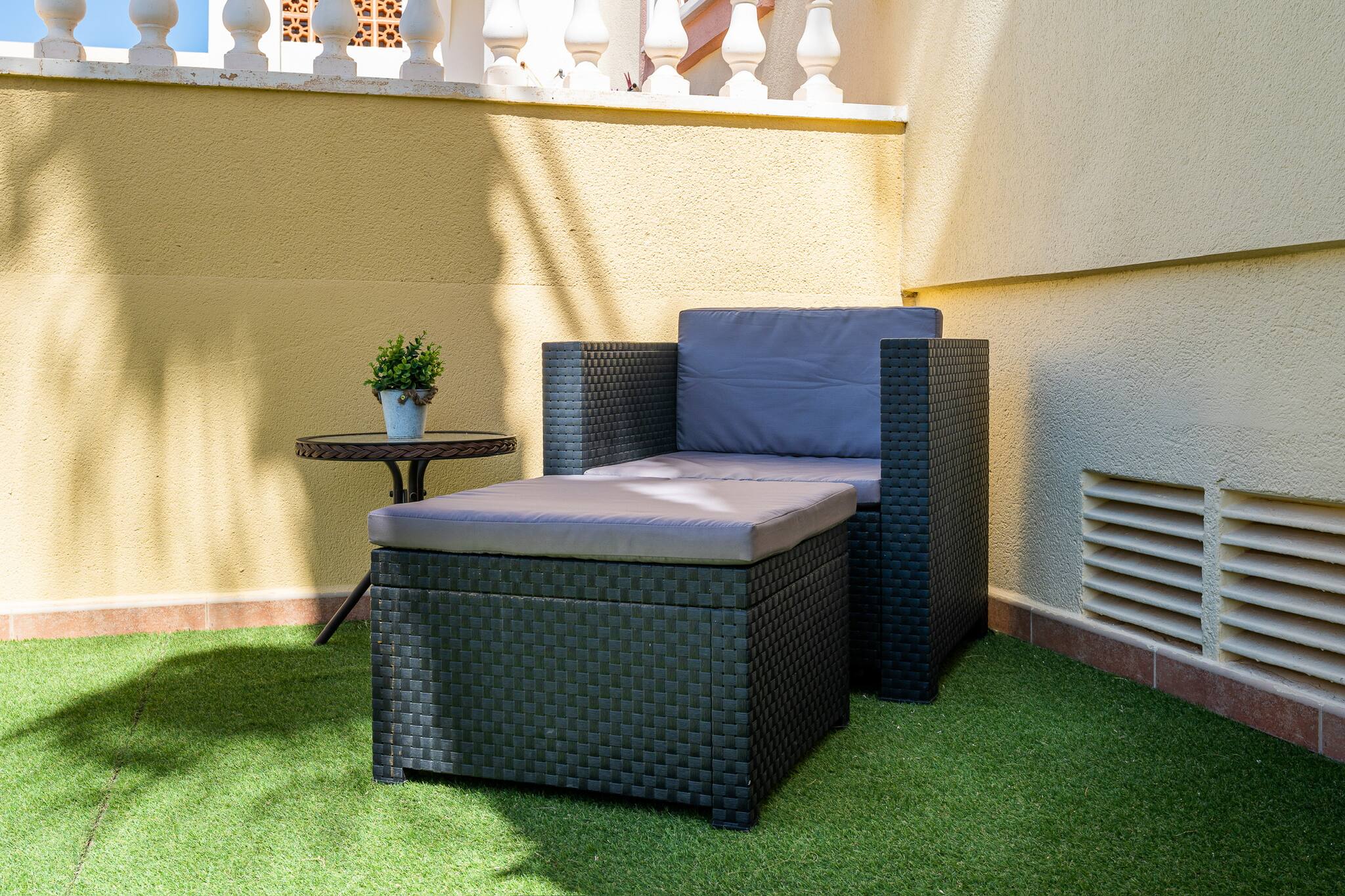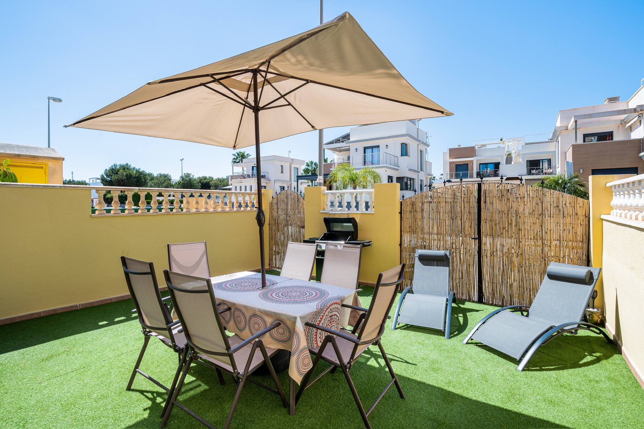Location de vacances dans un bungalow moderne et lumineux à La Zenia pour 6 personnes. Il dispose de 2 chambres, d'une salle de bain, d'une cuisine équipée et d'un salon avec un canapé-lit double. Grande terrasse avec table, chaises et transats. Situé dans une urbanisation calme avec piscine communautaire, près des plages, des commerces et des restaurants. Idéal pour profiter du soleil et de la côte en toute tranquillité.