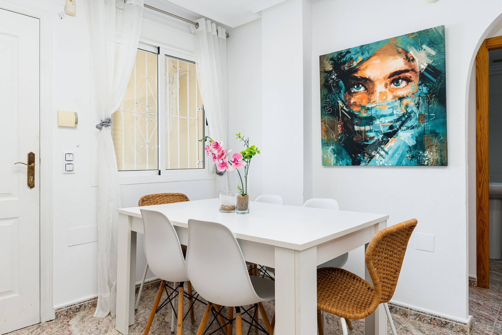 Découvrez ce charmant appartement à Orihuela Costa, à seulement quelques minutes des plages de la Costa Blanca. Situé dans une résidence calme avec piscine communautaire et jardins, il est idéal pour des vacances reposantes. Il offre un salon lumineux, une cuisine équipée, des chambres confortables et une terrasse vitrée parfaite pour se détendre. Avec 3 supermarchés, 2 centres commerciaux et une large zone de restaurants à 5 minutes à pied, vous aurez tout ce qu'il faut pour profiter de la Méditerranée.