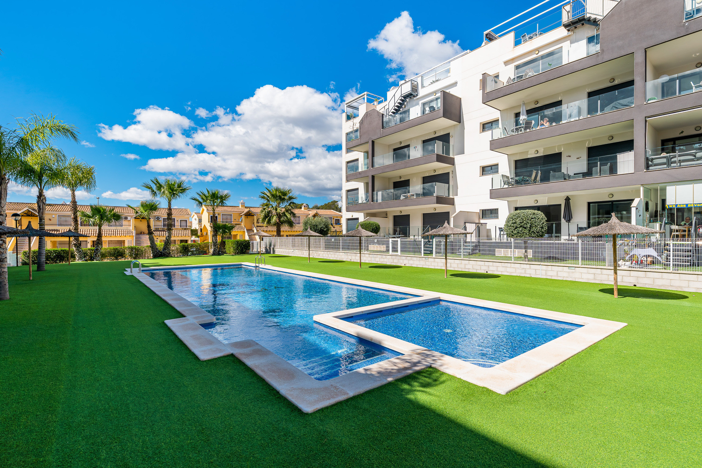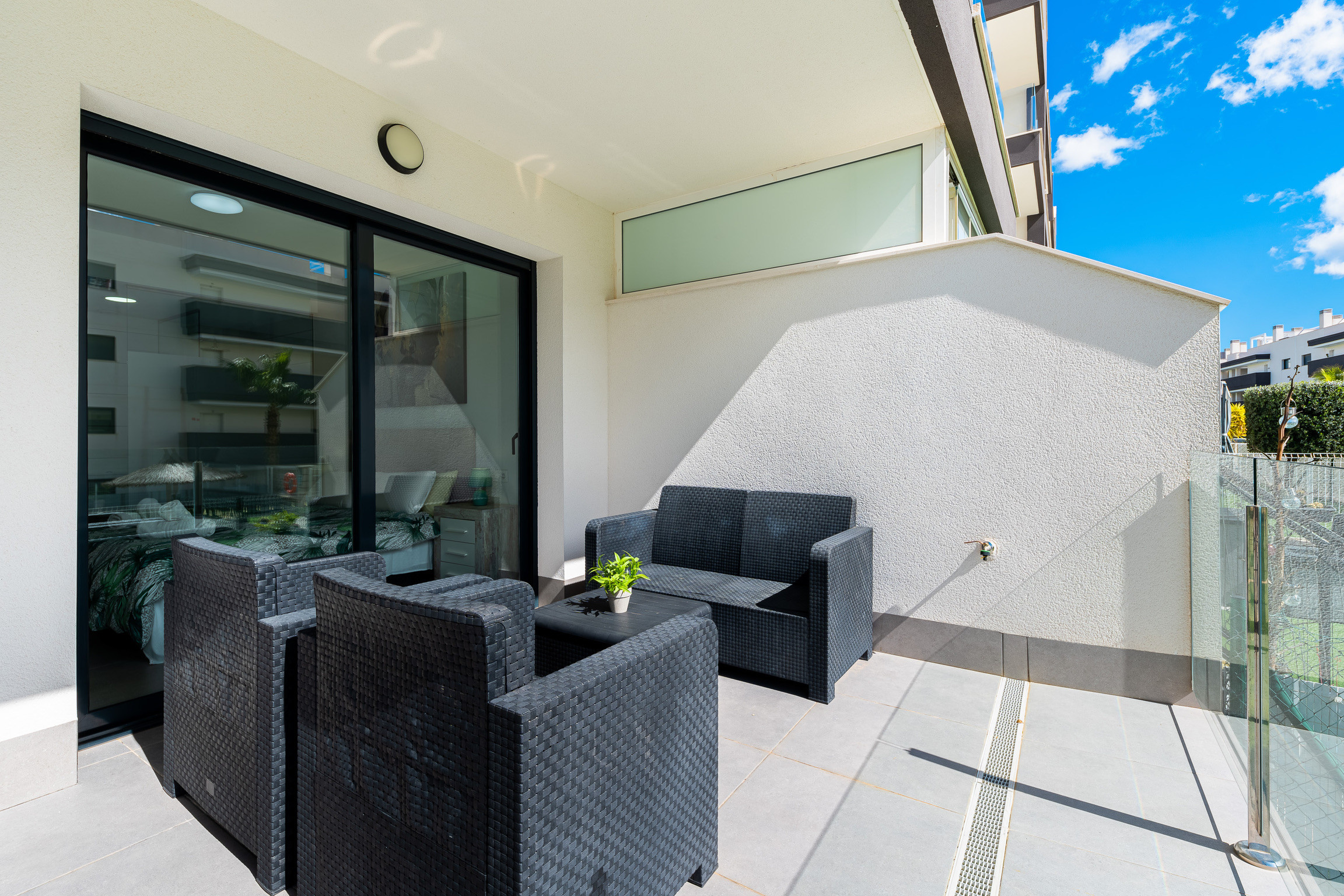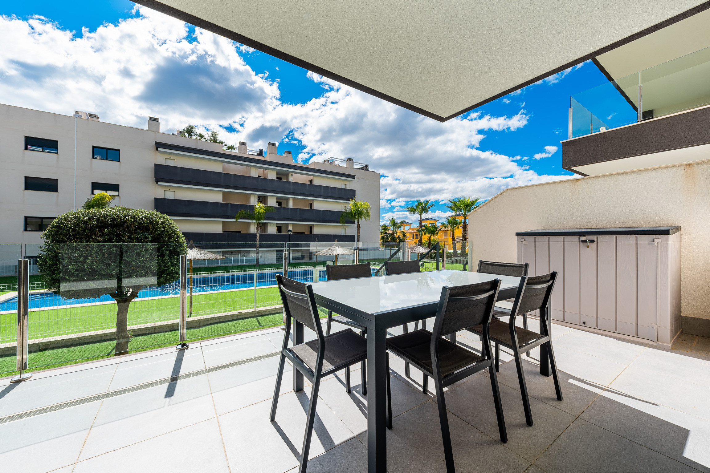 Découvrez ce moderne appartement en rez-de-chaussée à Villamartín (Orihuela Costa), idéal pour profiter du climat méditerranéen. Il dispose de 2 chambres, 2 salles de bains, d'une cuisine équipée et d'un salon lumineux, avec accès à une grande terrasse privée donnant sur la piscine, parfaite pour se détendre.
