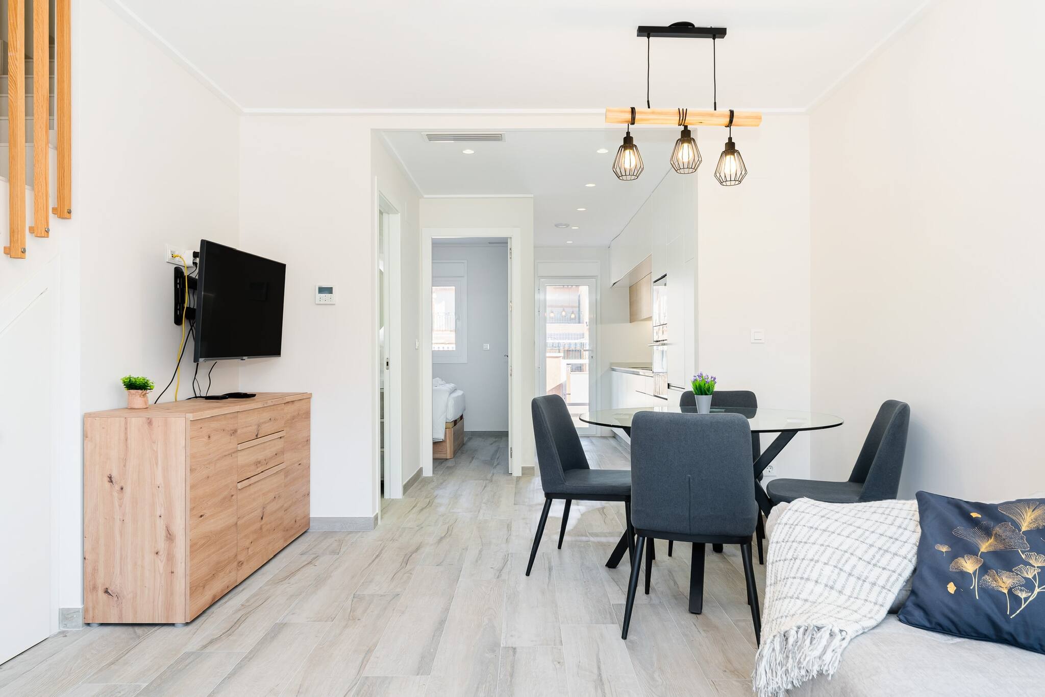 Bienvenue dans notre appartement ! Avec trois chambres accueillantes et un canapé-lit confortable, vous pouvez héberger jusqu'à 7 personnes. Avec deux salles de bains complètes, nous garantissons le confort et la commodité pour tous. À seulement 7 minutes à pied de la plage, c'est parfait pour profiter du soleil et de la mer. Avec une décoration contemporaine et tous les conforts, vous vous sentirez comme chez vous dès votre arrivée ! Réservez maintenant et vivez des vacances inoubliables sur la côte de Torre de la Horadada !