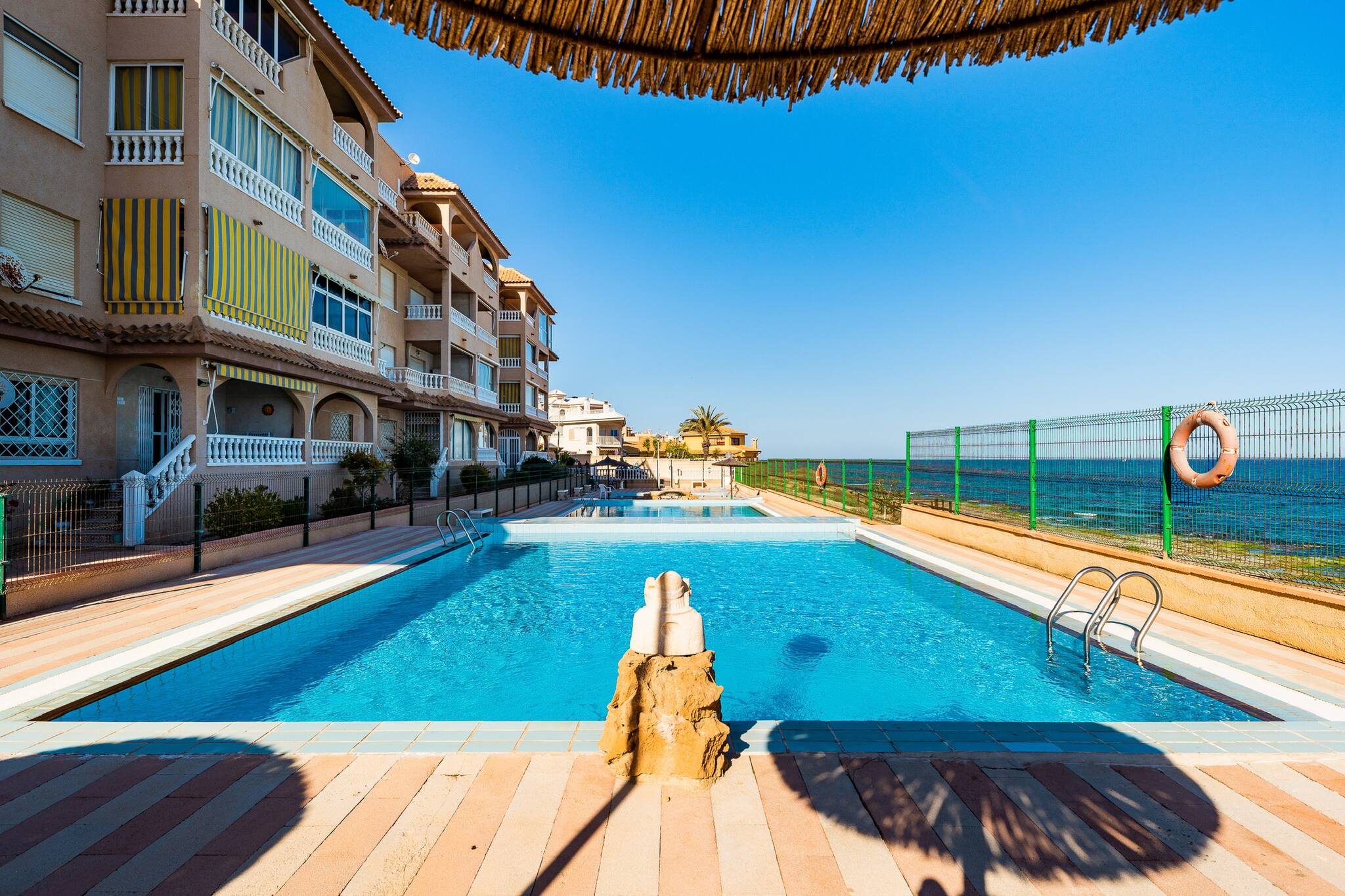 Le logement est baigné de lumière naturelle et décoré avec une simplicité chaleureuse, conçu pour offrir un séjour pratique et agréable. La piscine communautaire invite à un bain rafraîchissant après une journée de plage ou de promenade dans le centre animé de Torrevieja.