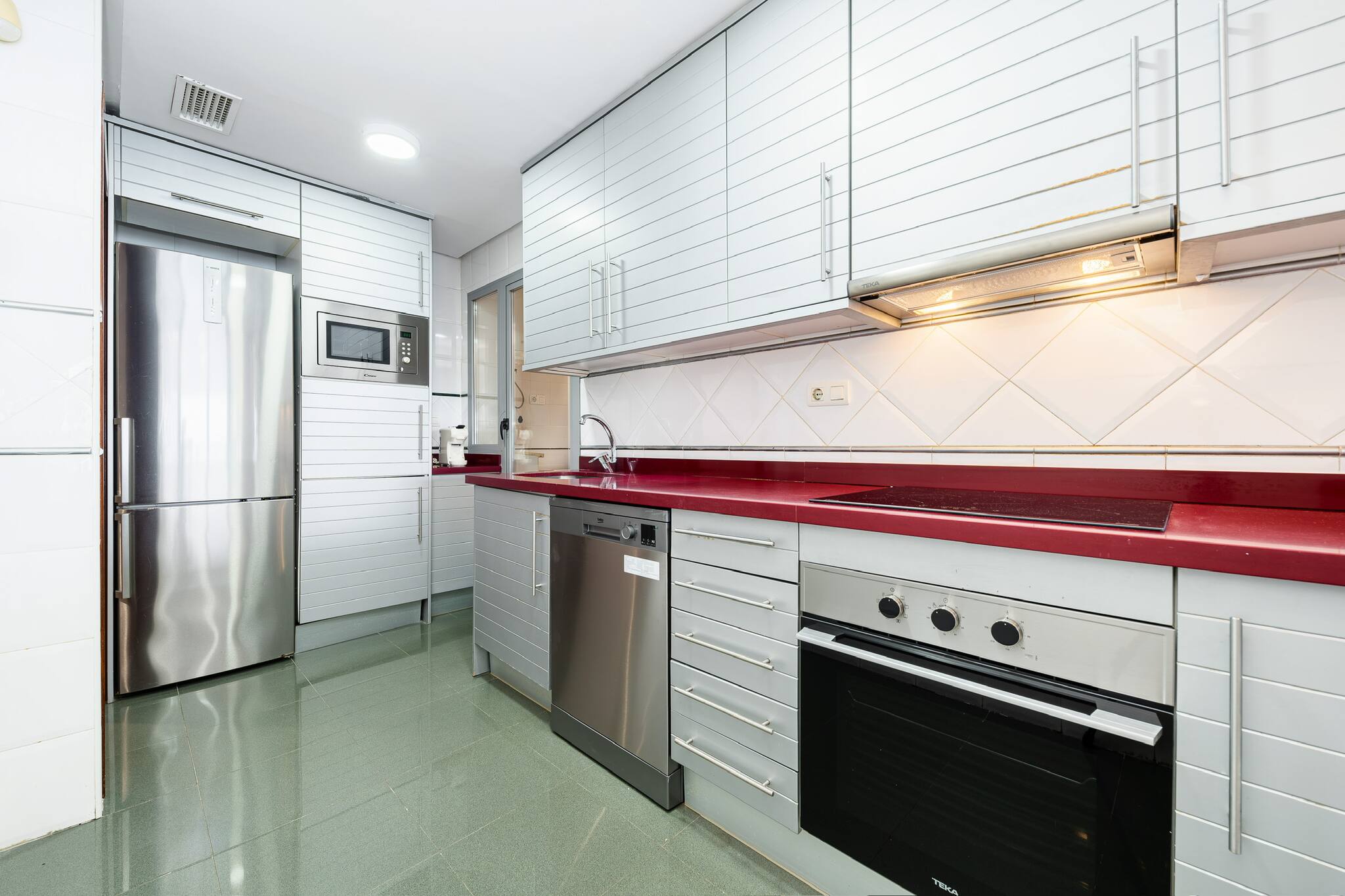 La cuisine est équipée des principaux électroménagers (cafetière, Micro-ondes, four, réfrigérateur, cuisinière avec plaques vitrocéramiques et four), et le salon dispose d’une Smart TV.