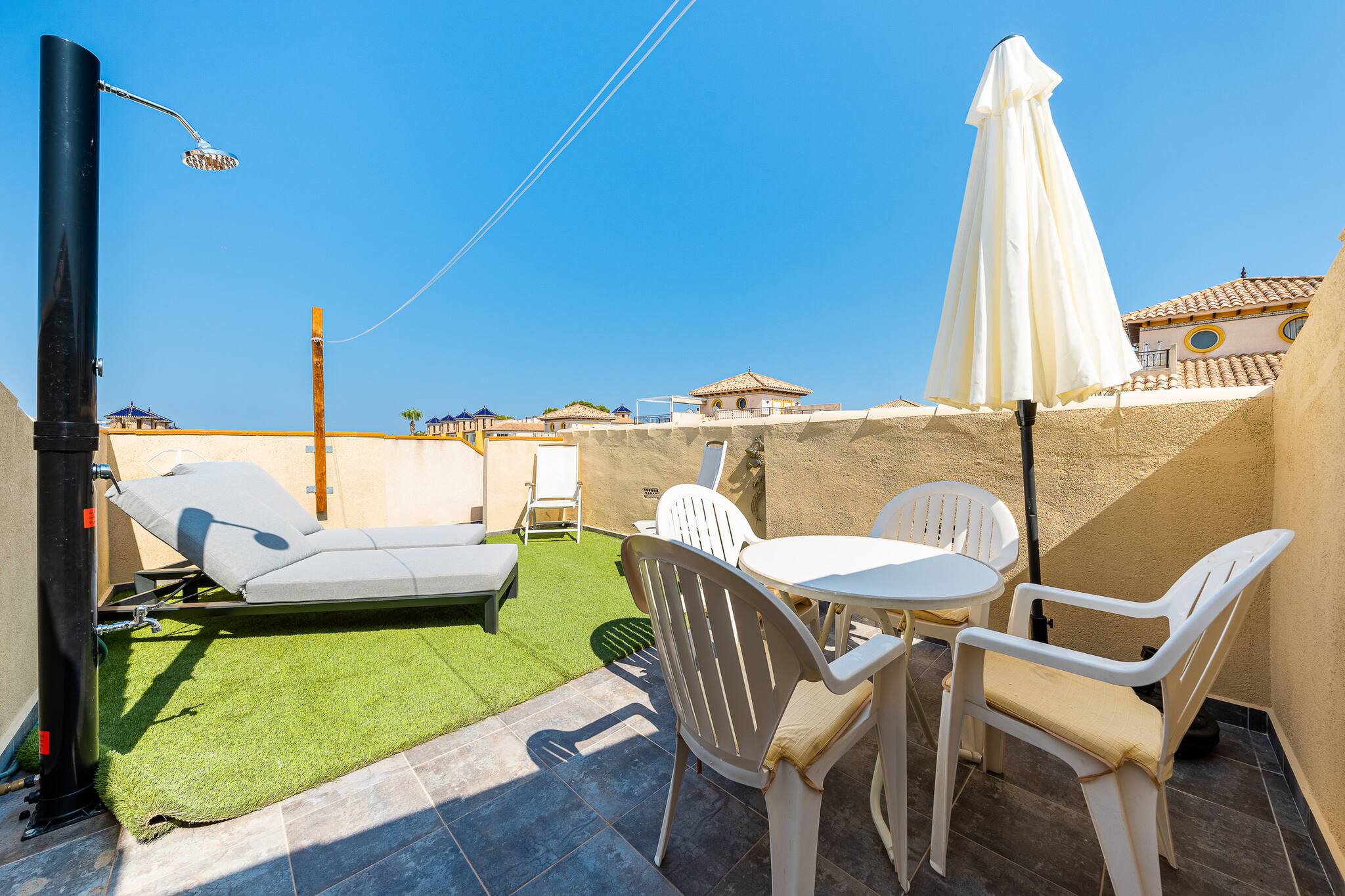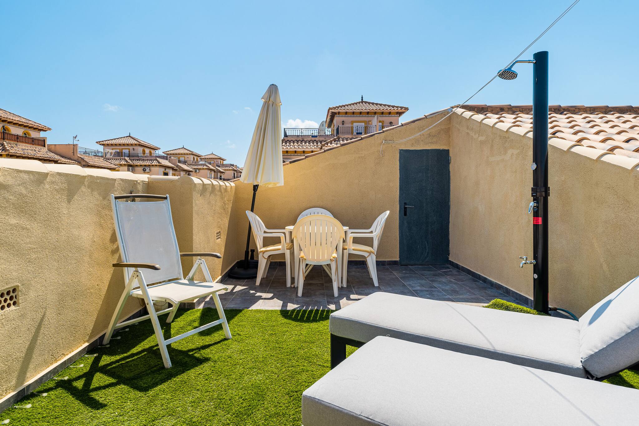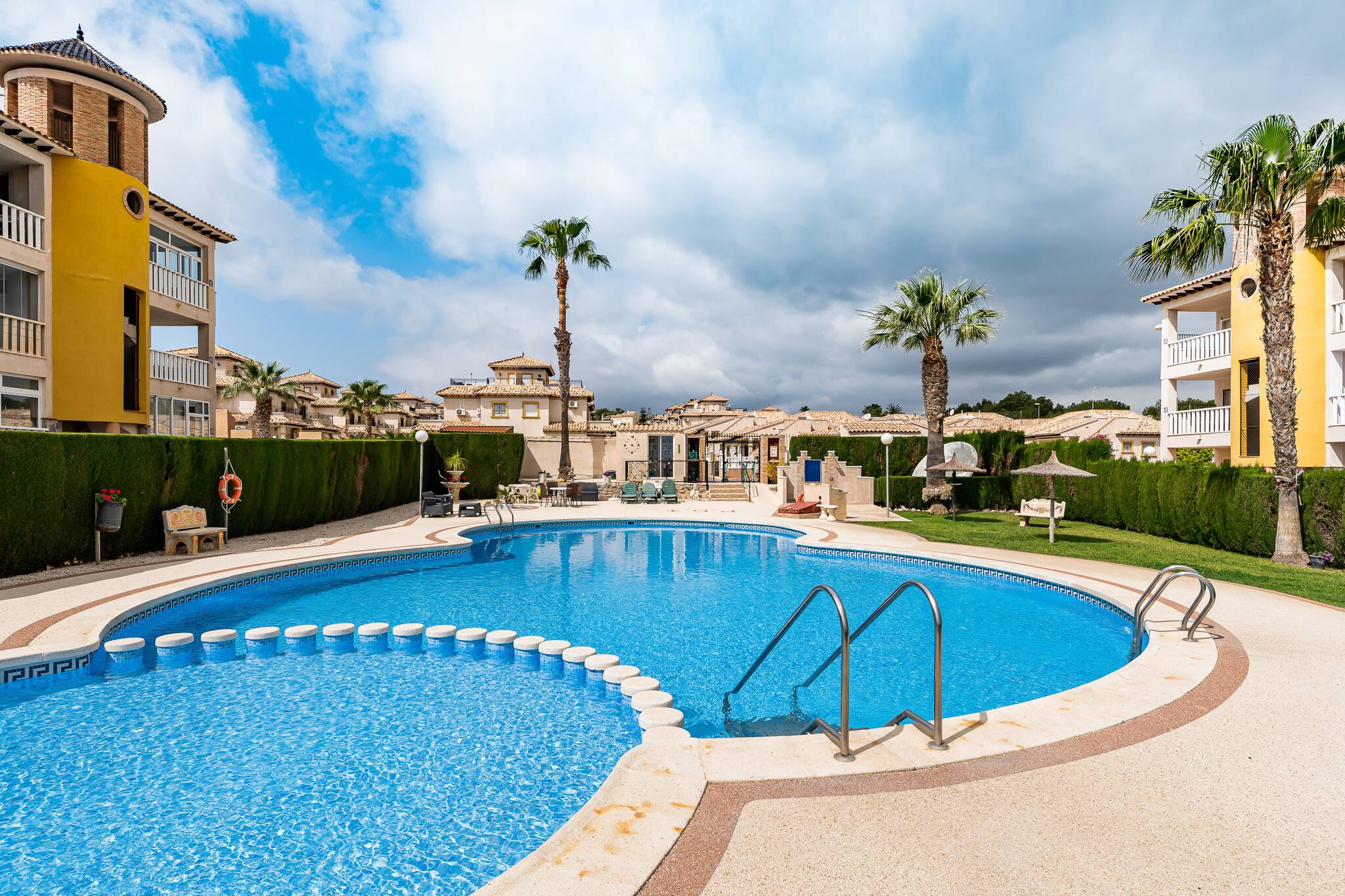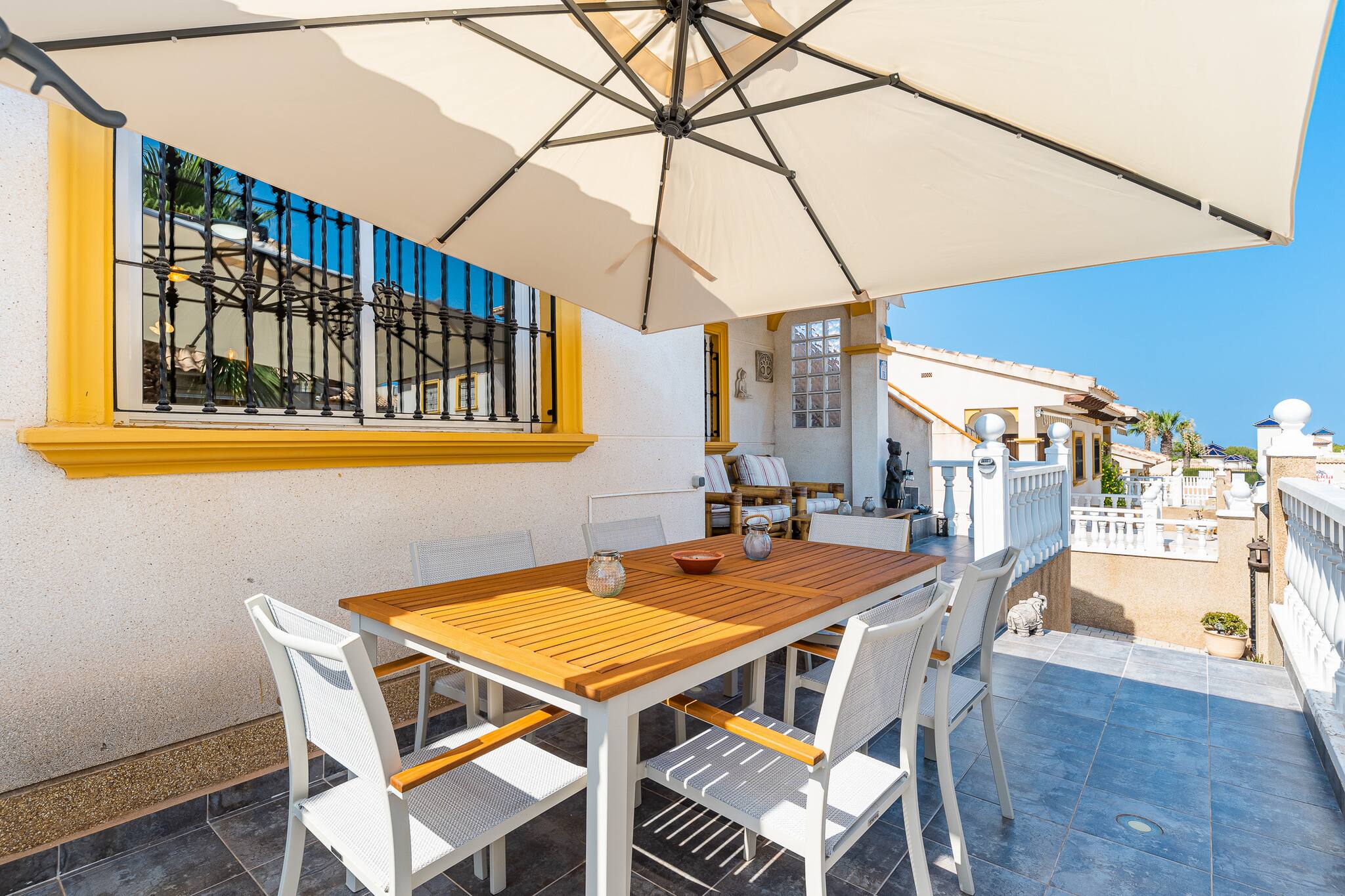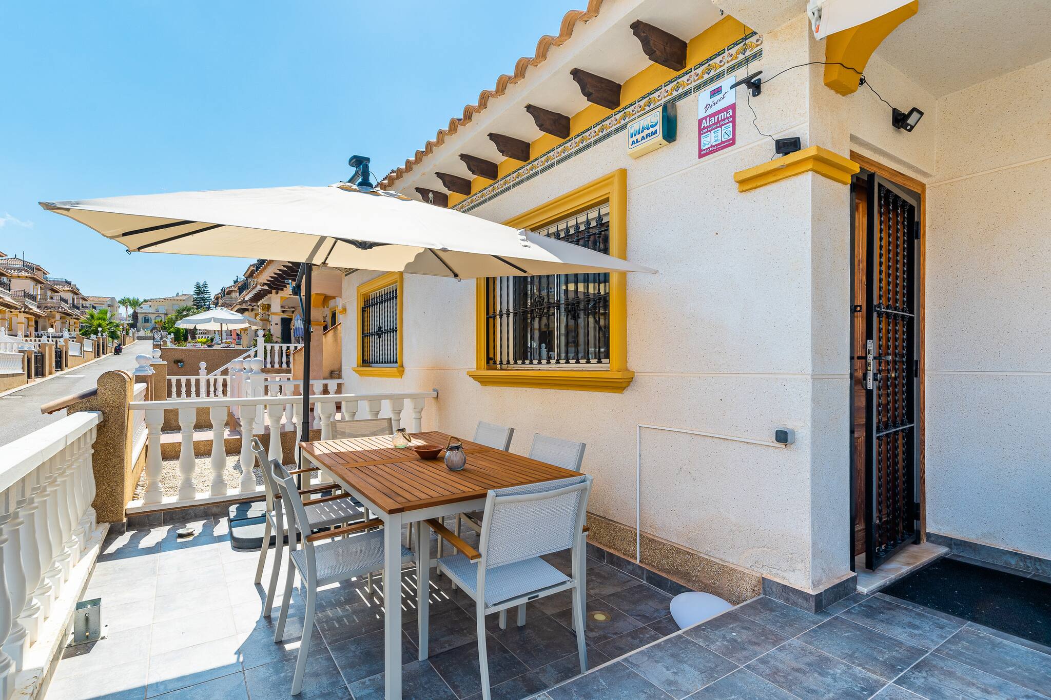 Profitez d'un séjour relaxant dans cette maison moderne à Villamartín, Orihuela Costa. Avec 3 chambres, 1 salle de bain, une cuisine entièrement équipée et un grand salon avec accès à une terrasse, elle est parfaite pour les familles ou les groupes. L'urbanisation dispose d'une piscine communautaire et d'espaces verts. À quelques minutes des plages, des terrains de golf, des restaurants et des centres commerciaux. Idéal pour profiter du soleil et de la tranquillité de la Costa Blanca.