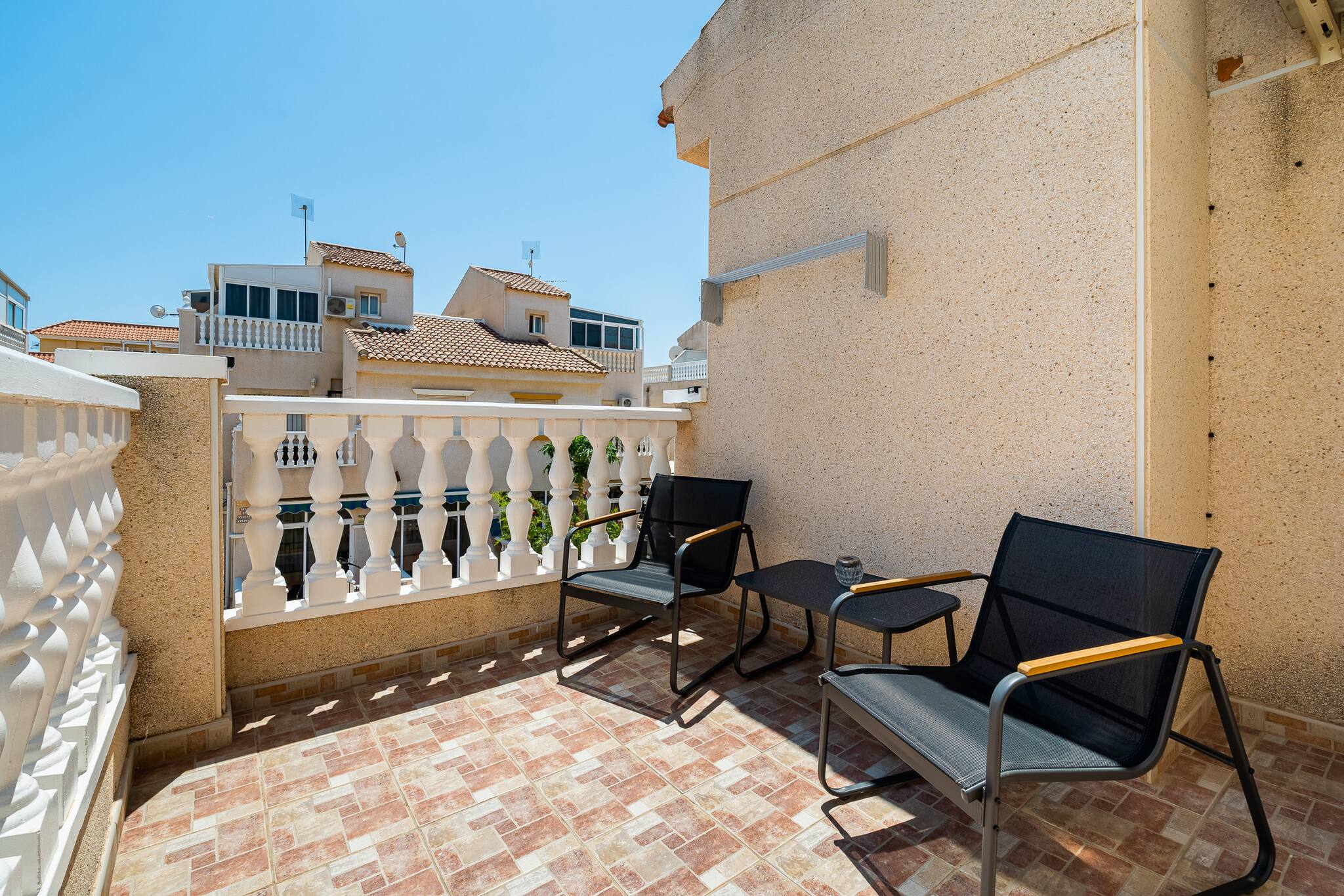 Détendez-vous dans cette charmante maison avec cour privée, barbecue, salle à manger extérieure et chaises longues, située dans El Coral Phase 1, Torrevieja. À seulement 800 m de la plage, avec piscine communautaire, idéal pour les familles ou les couples. Cuisine équipée, climatisation, ventilateurs de plafond et zone résidentielle calme. Bien desservie : bus, supermarchés et accès rapide à la N-332 pour explorer la Costa Blanca. Confort, soleil et mer toute l'année !