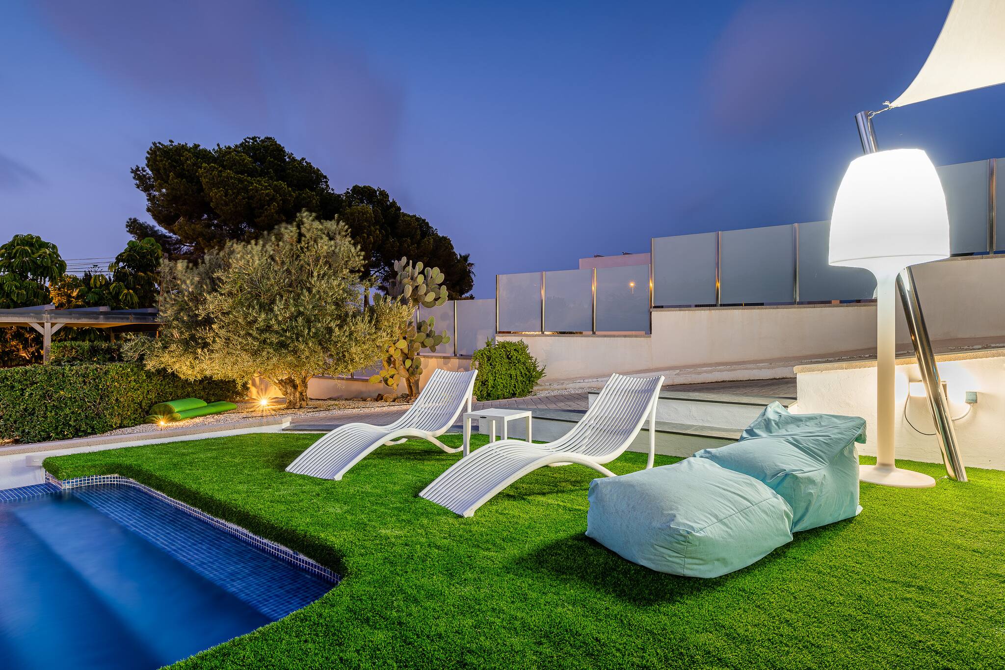 Profitez de cette spectaculaire villa moderne à Los Balcones avec piscine à débordement privée, jardin avec gazon artificiel, chaises longues et zones de détente. Intérieur lumineux et élégant, idéal pour se détendre en famille ou entre amis. Située dans un quartier résidentiel calme, à seulement quelques minutes des plages, restaurants et supermarchés de Torrevieja. Parfaite pour des vacances inoubliables sur la Costa Blanca !